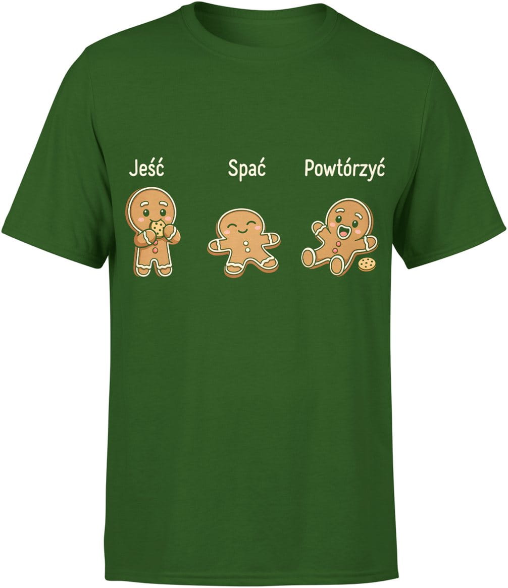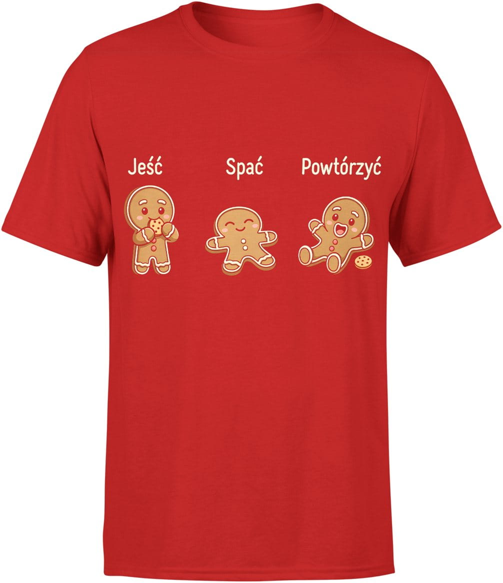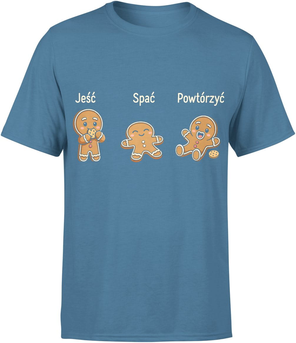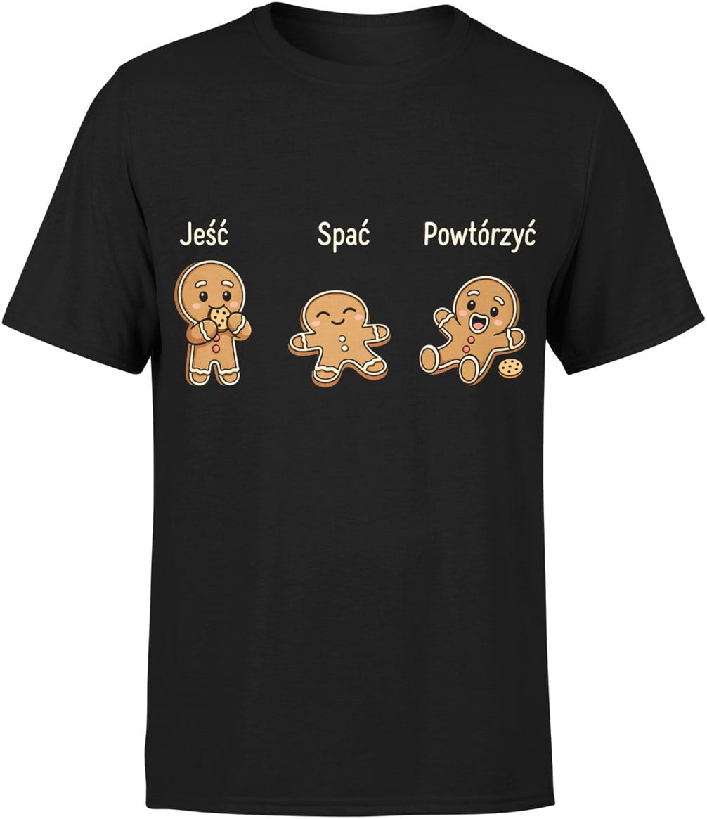 Jeść spać powtórzyć pierniczki humor relaks chill życie na luzie Męska koszulka