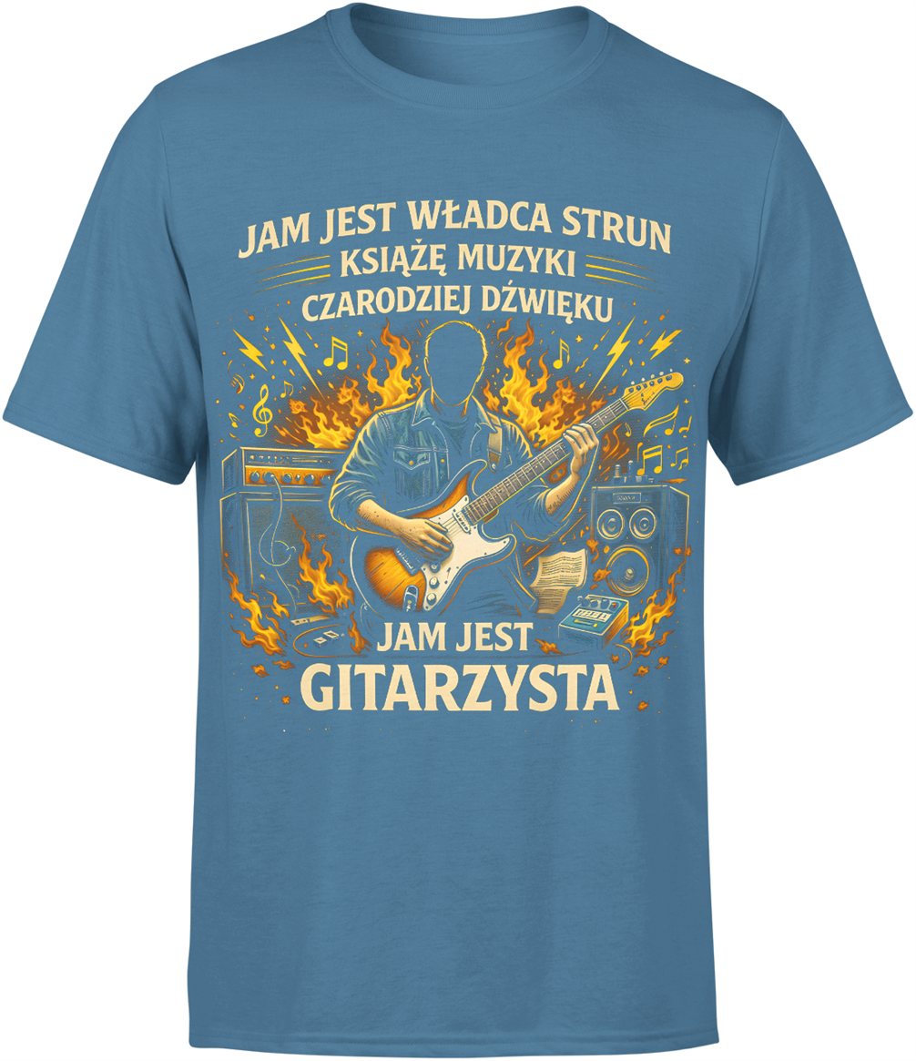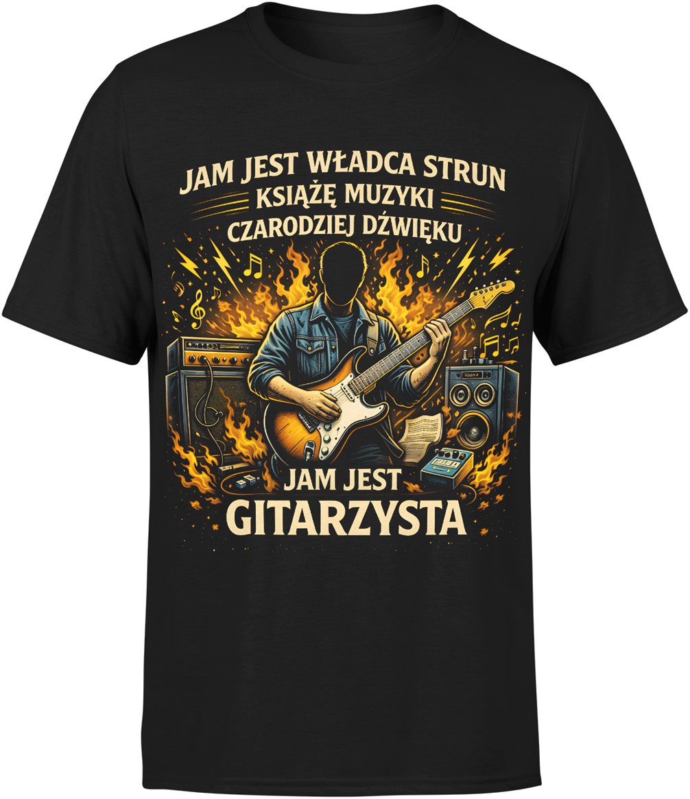 Jestem gitarzystą władca strun elektryczna gitara ogień scena koncert pasja Męska koszulka