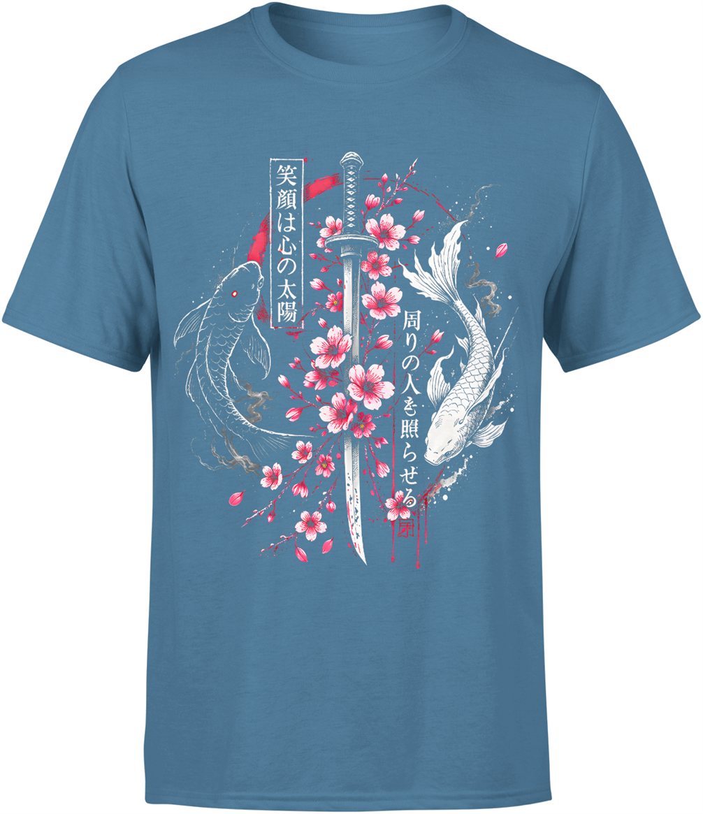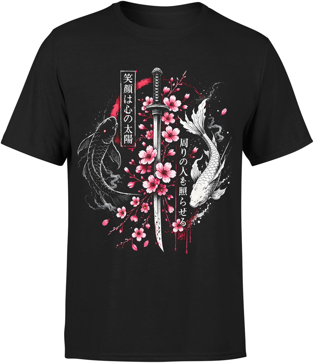 Karp koi yin yang katana sakura styl japoński zen samuraj ryba koi orientalny motyw Japonia Męska koszulka