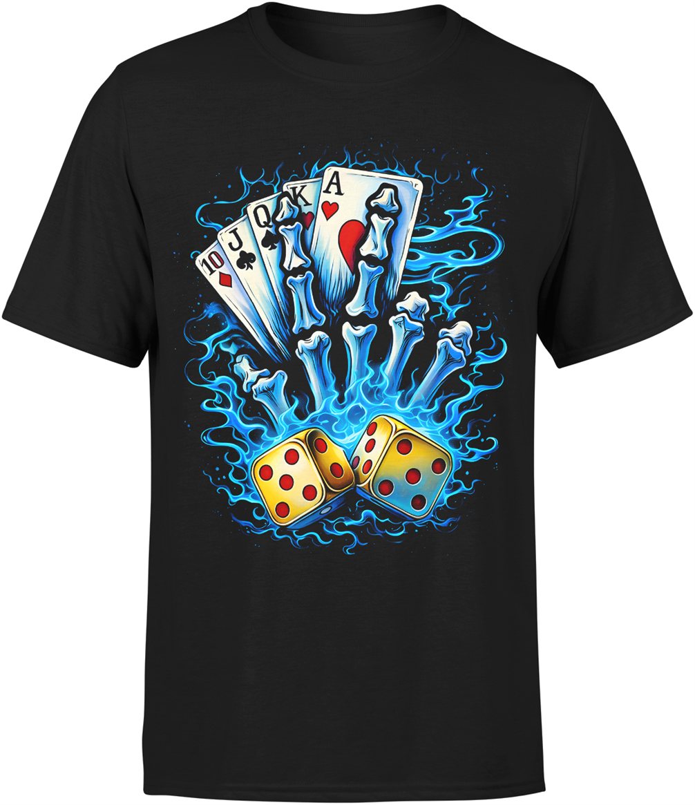 Kości karty poker hazard lucky dice ogień neon kasyno gra szczęście ryzyko styl Męska koszulka