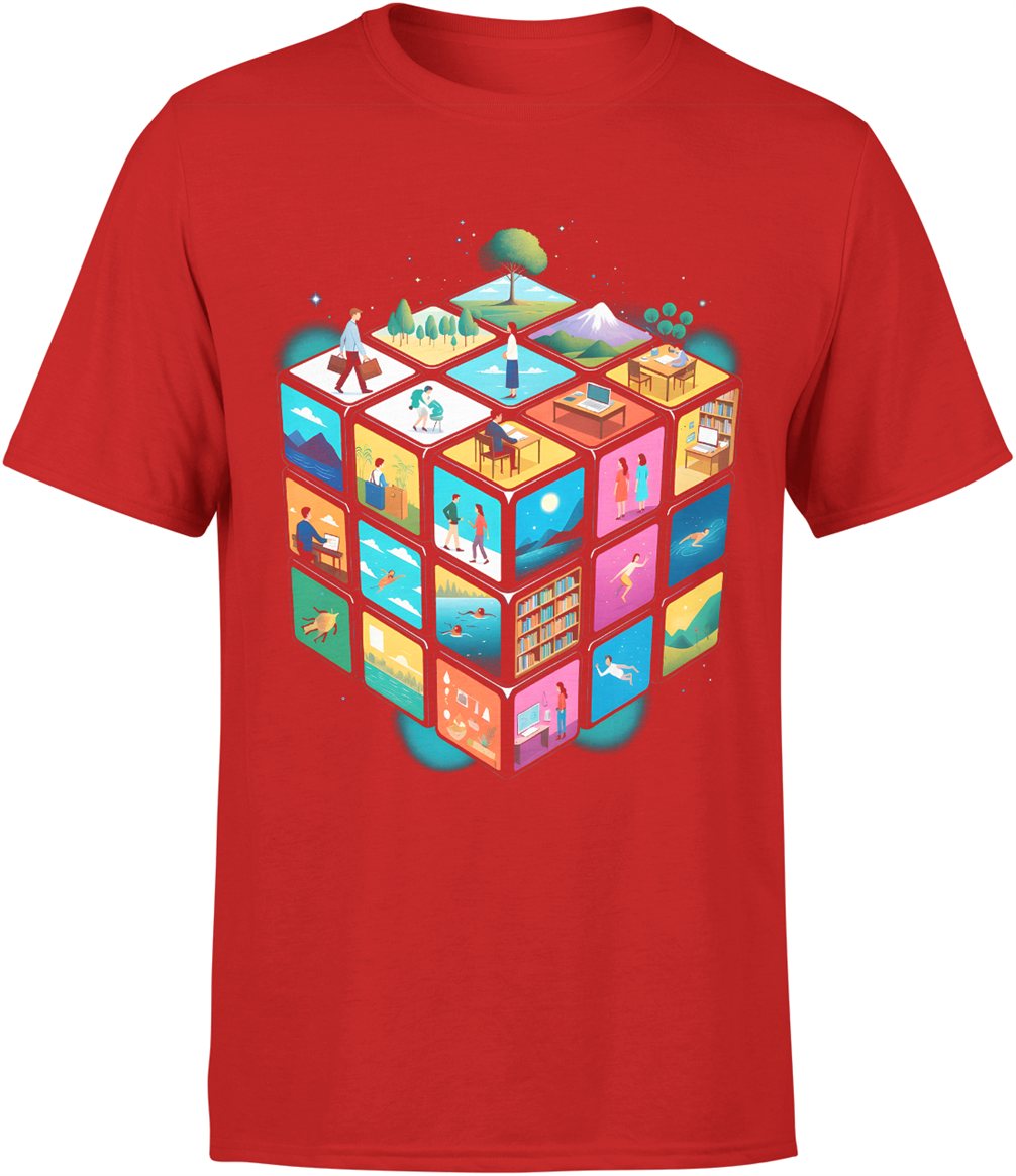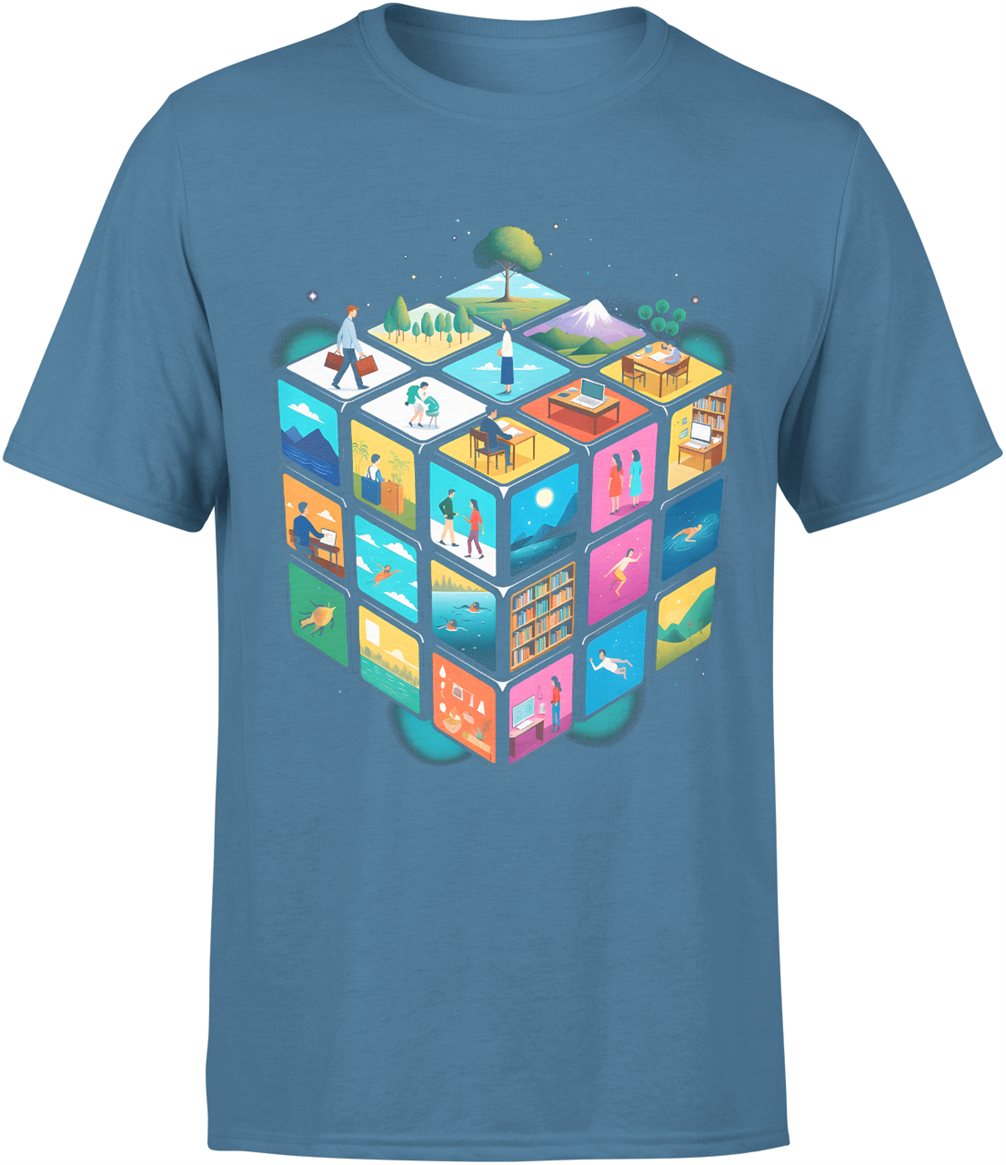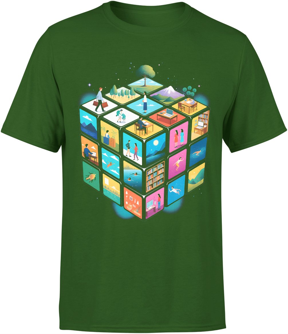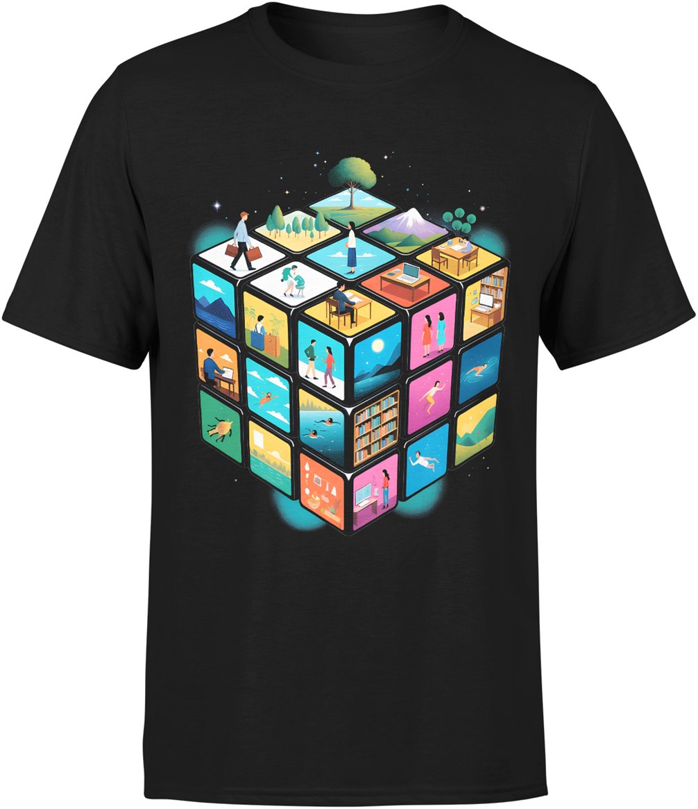 Kostka światów życie praca podróże natura kreatywność styl minimalistyczny nowoczesny design Męska koszulka