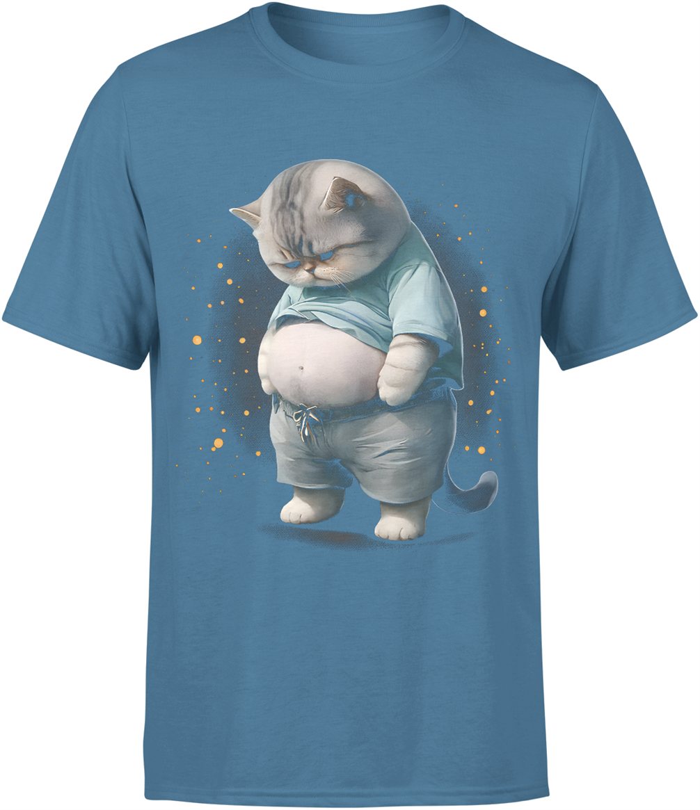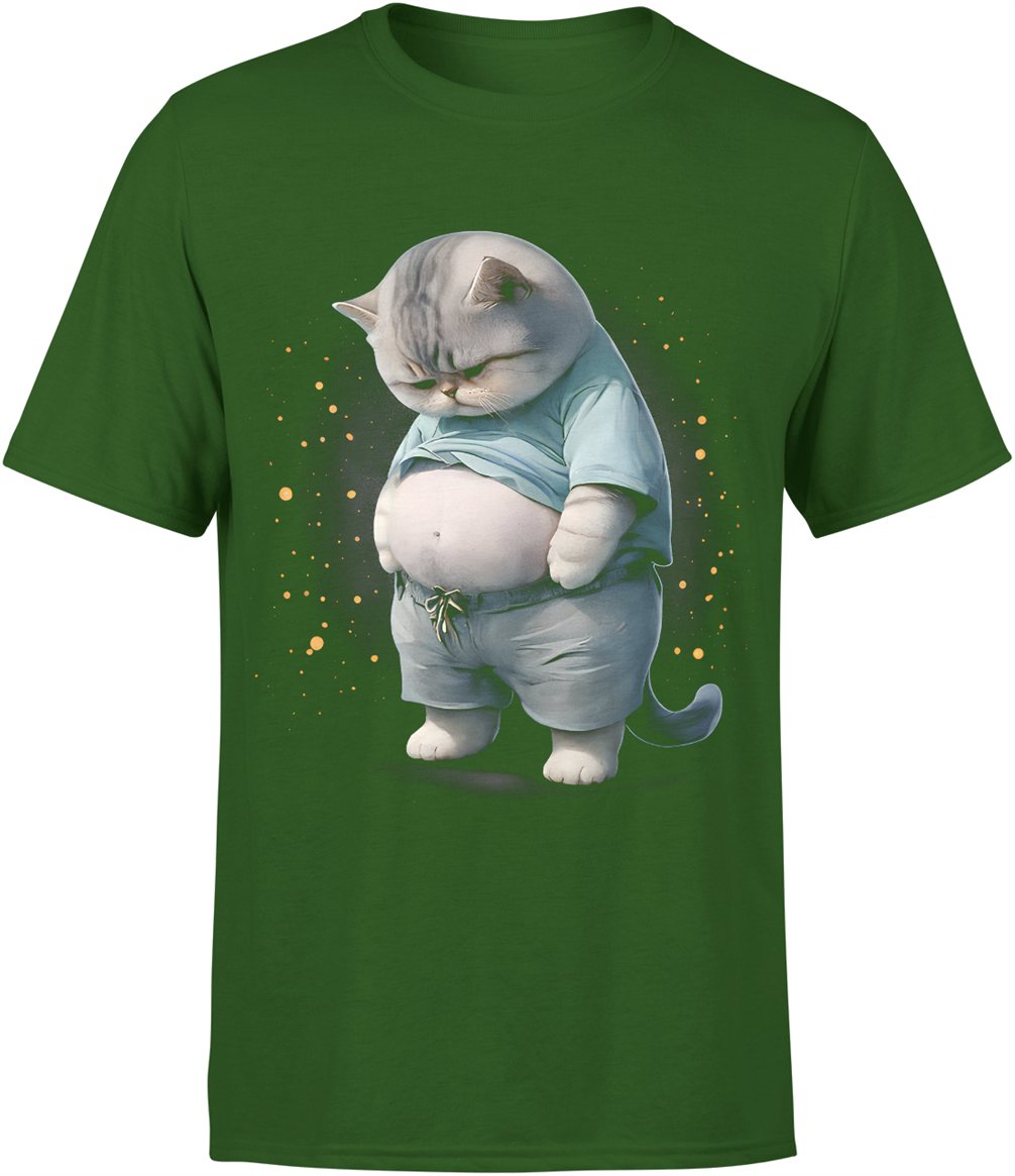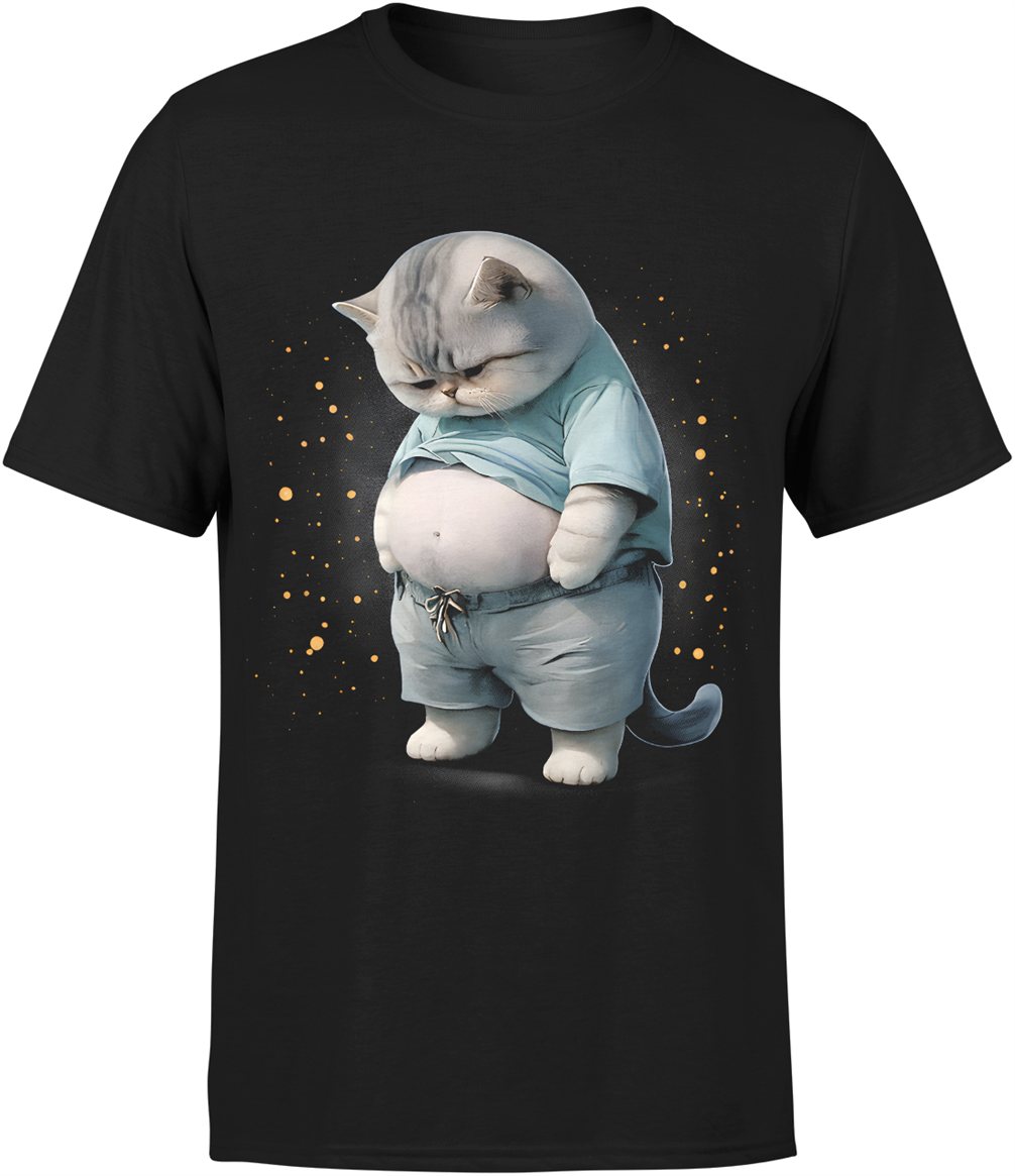 Kot gruby zabawny zwierzę humor leniwy styl uroczy kotek śmieszny wygląd mem vibe Męska koszulka