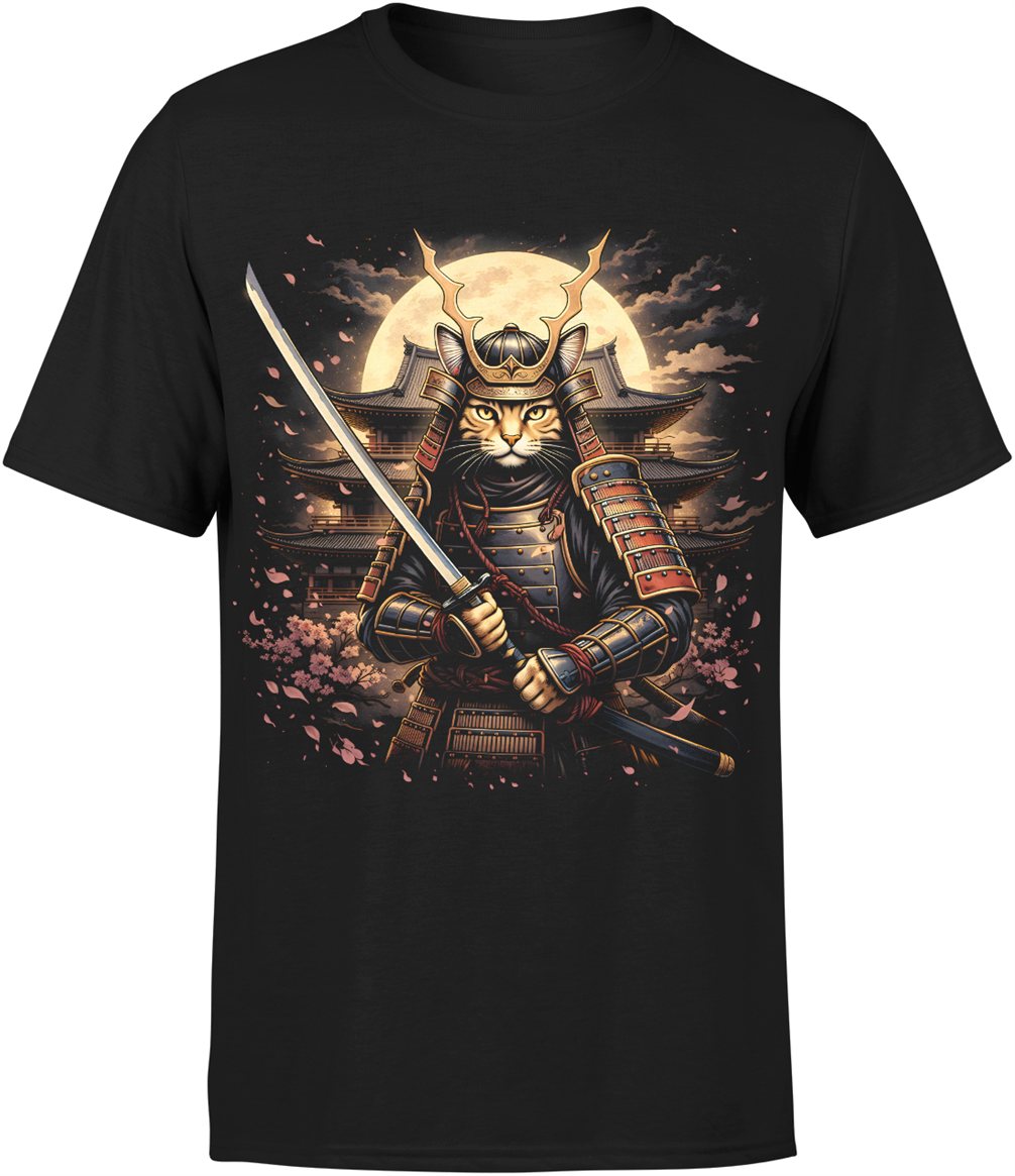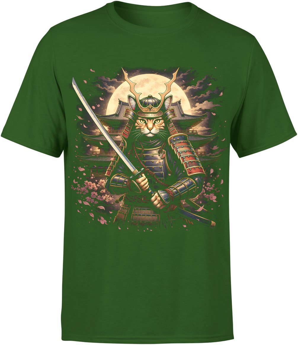 Kot samuraj katana Japonia wojownik honor styl orientalny sztuka walki klimat retro Męska koszulka