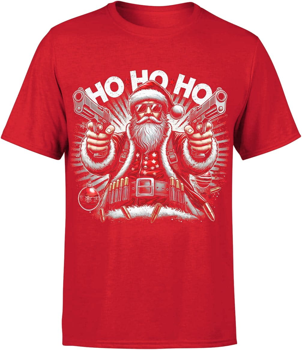 Mikołaj z pistoletami hohoho Męska koszulka