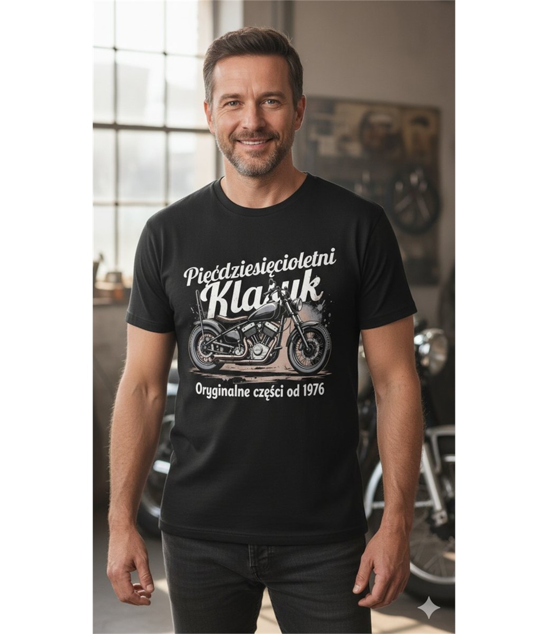 Motocykl custom Pięćdziesięciolatek – oryginalne części od 1976 Męska koszulka