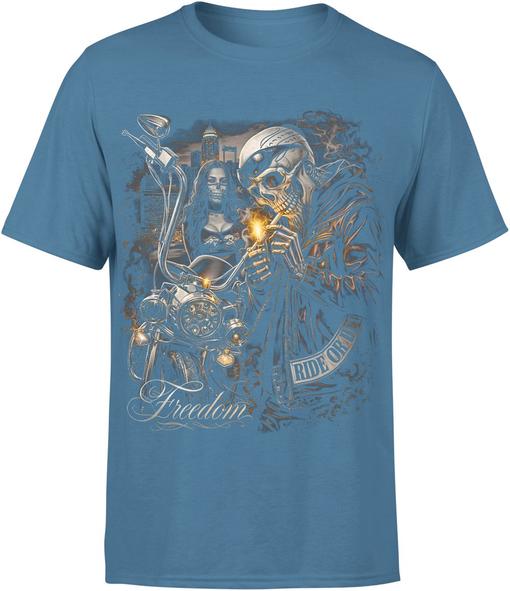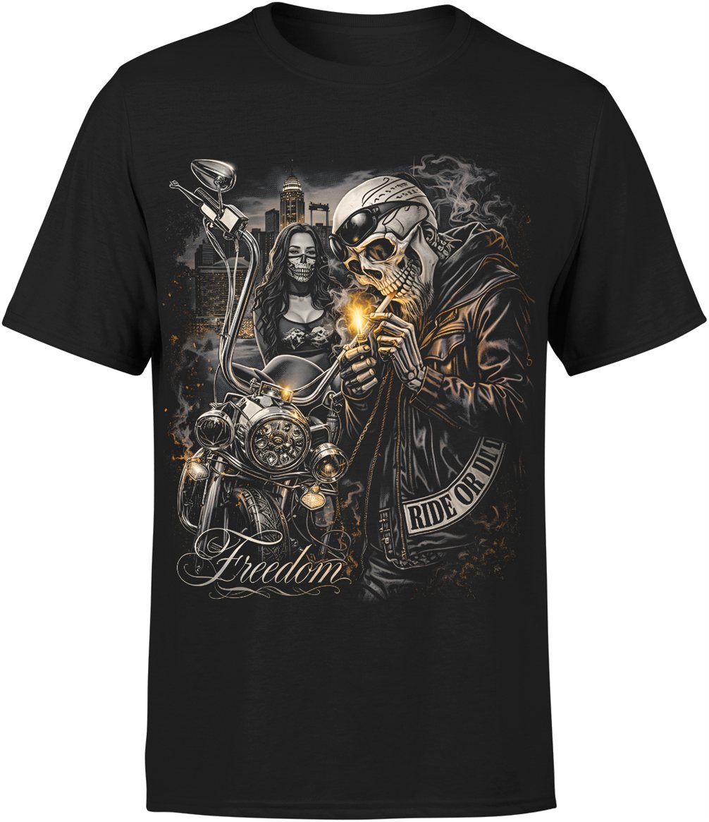 Motocykl szkielet biker ride or die wolność droga styl motoryzacyjny chopper klimat noc Męska koszulka
