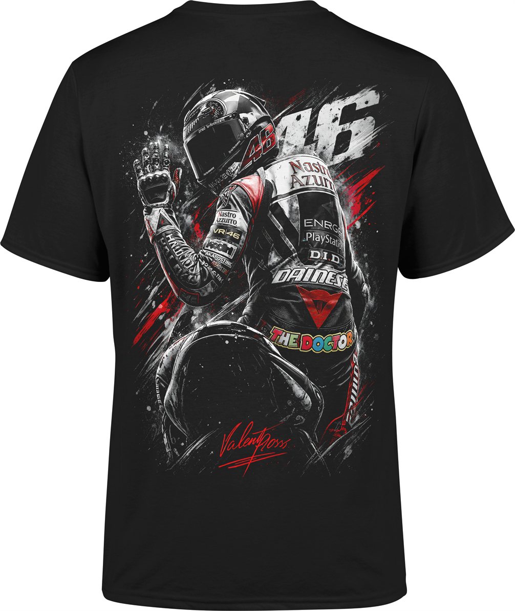Motocykl wyścigowy rider 46 tor prędkość adrenalina racing sport moto pasja jazdy Męska koszulka