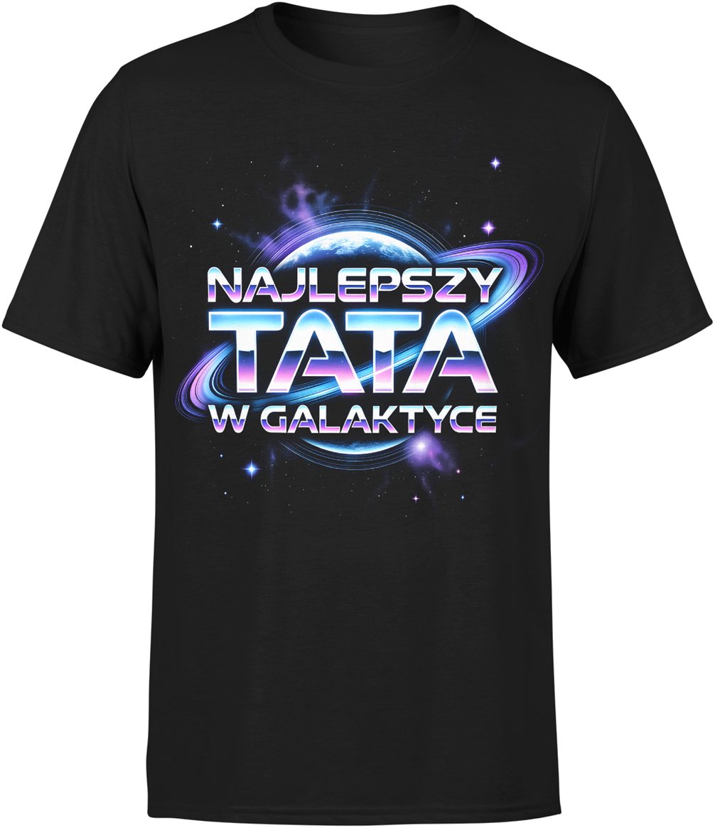 Najlepszy tata w galaktyce kosmos planeta gwiazdy space retro neon styl futurystyczny Męska koszulka