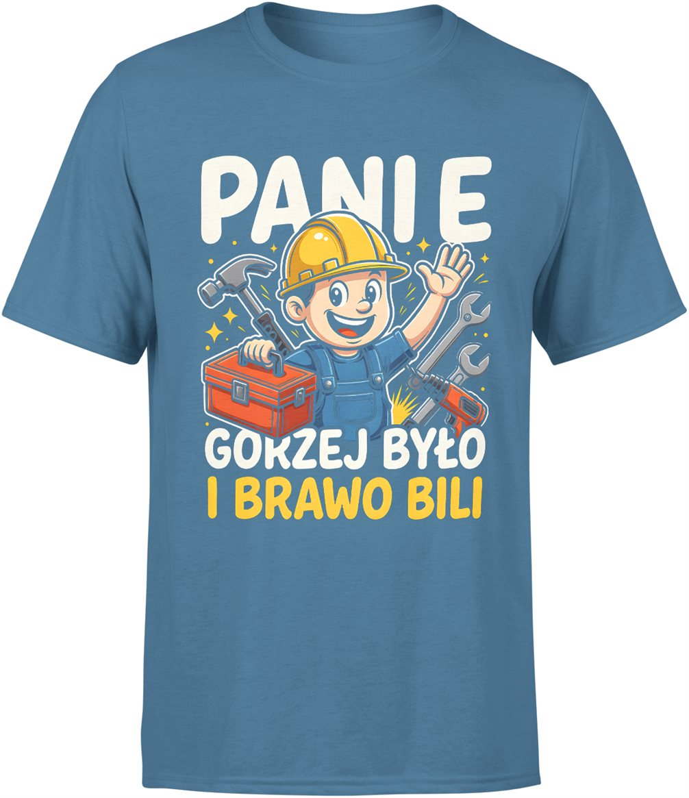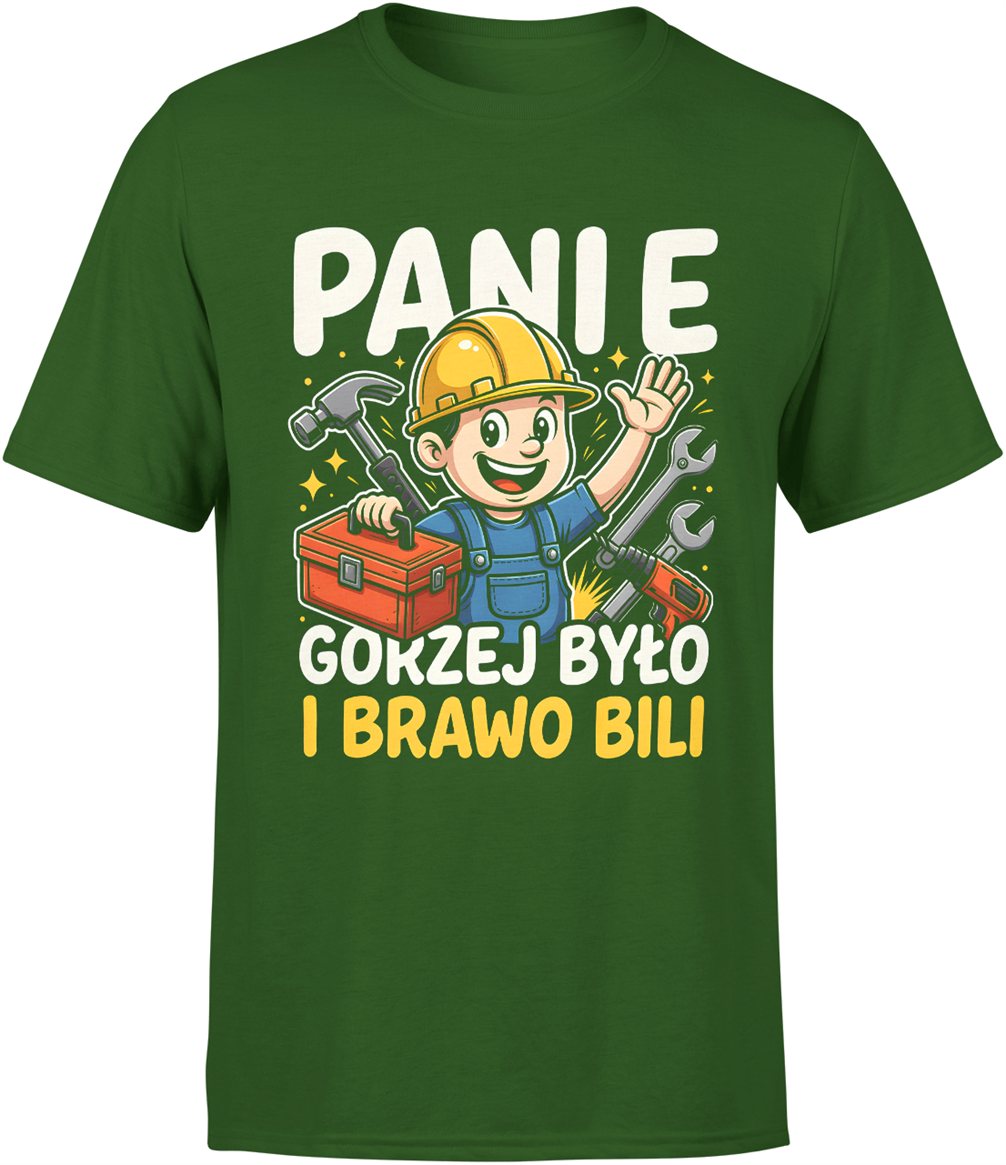 Panie gorzej było i brawo bili budowlaniec humor praca narzędzia majster tekst Męska koszulka