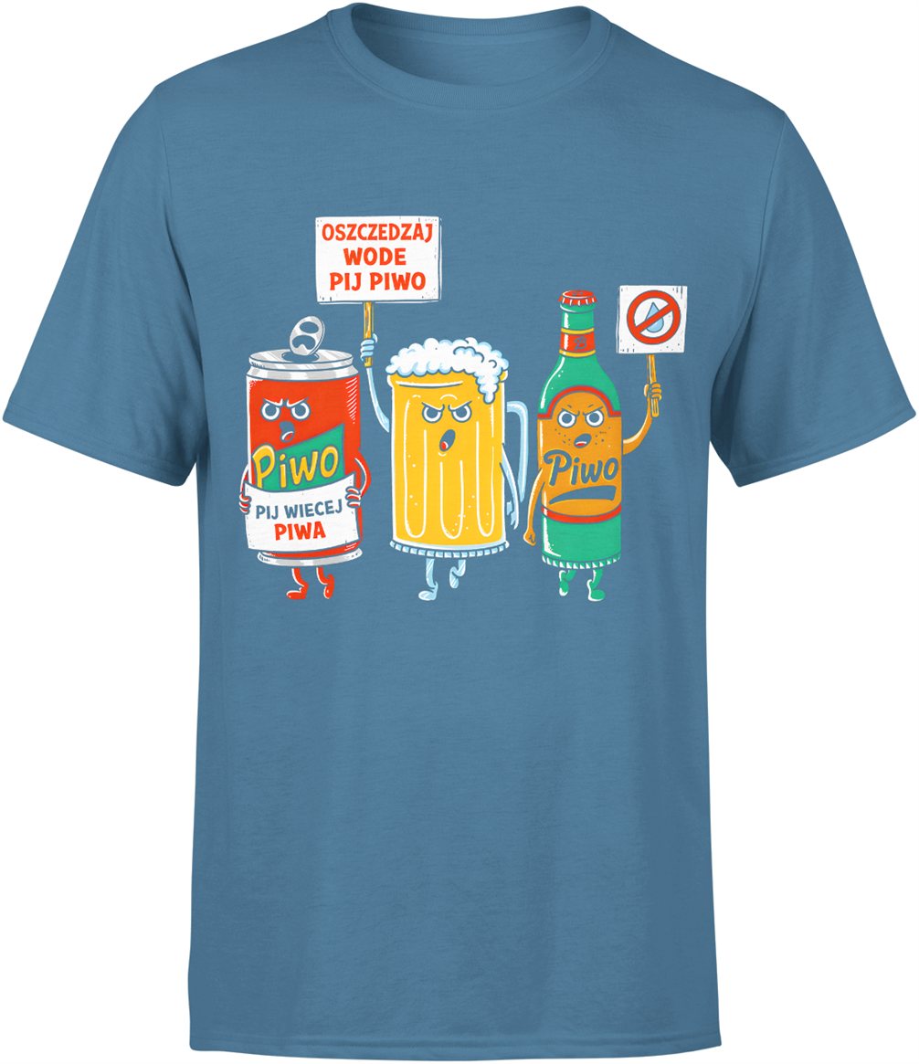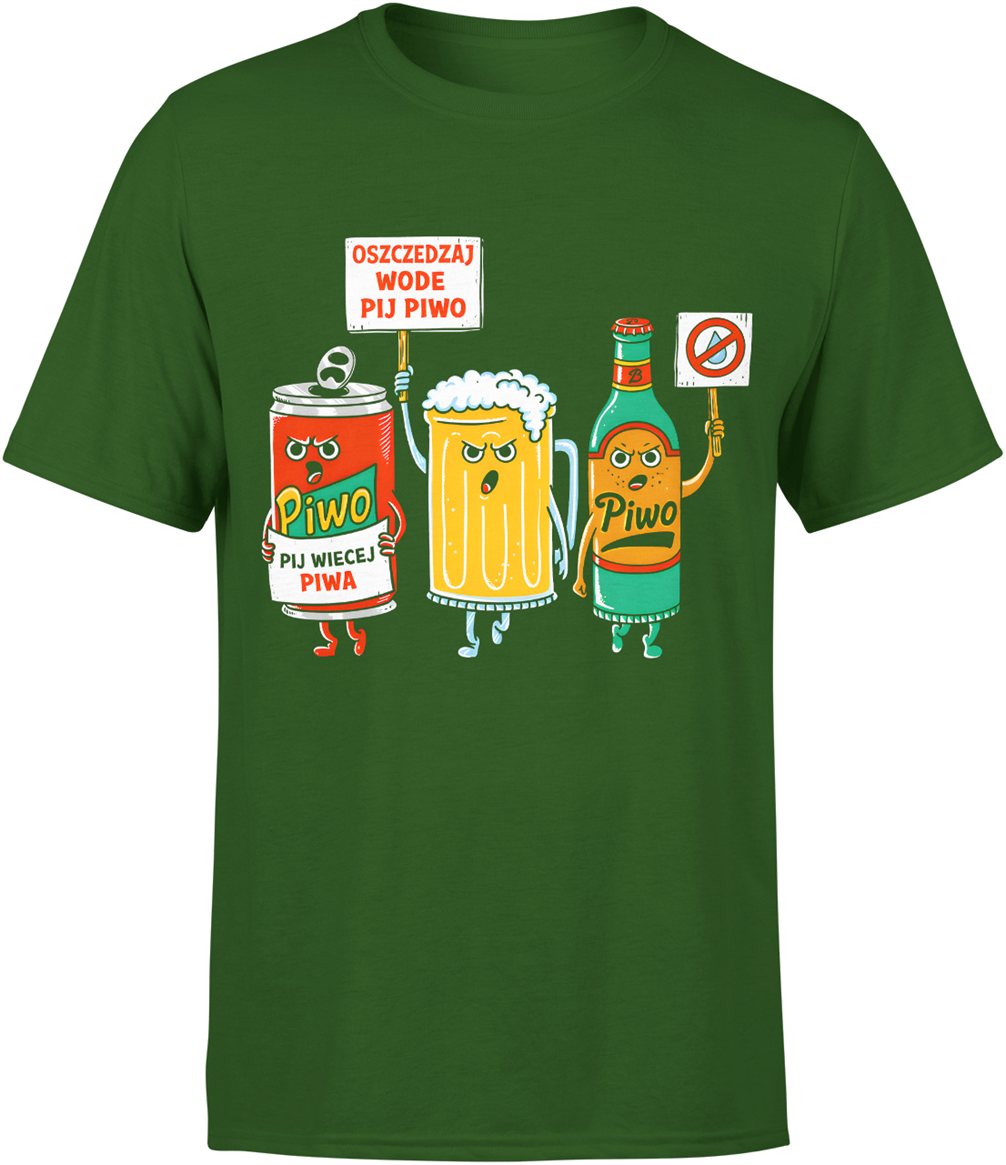 Piwo humor postacie kufel butelka puszka zabawny motyw impreza alkohol hasło oszczędzaj wodę Męska koszulka