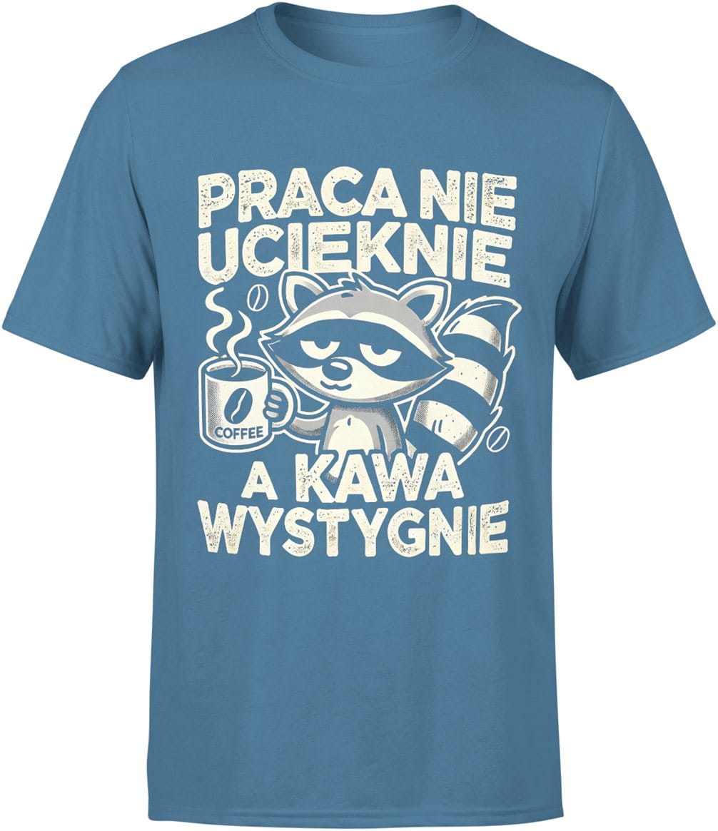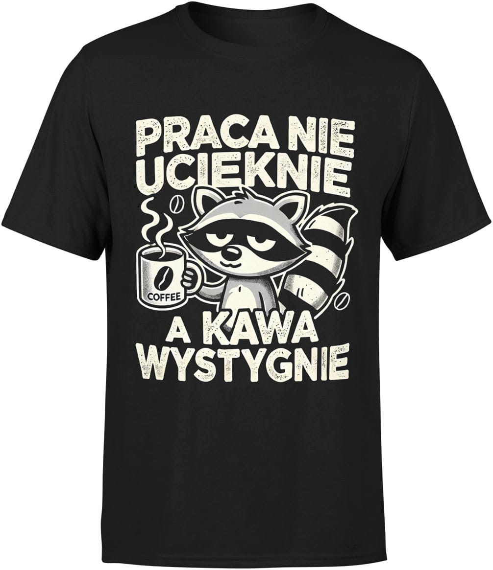 Praca nie ucieknie, a kawa wystygnie – leniwy szop Męska koszulka