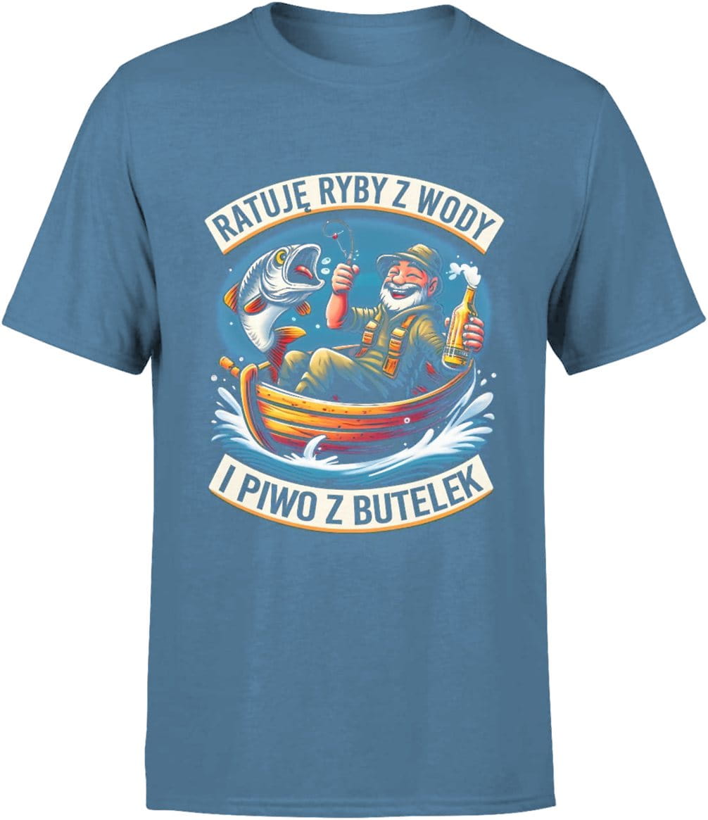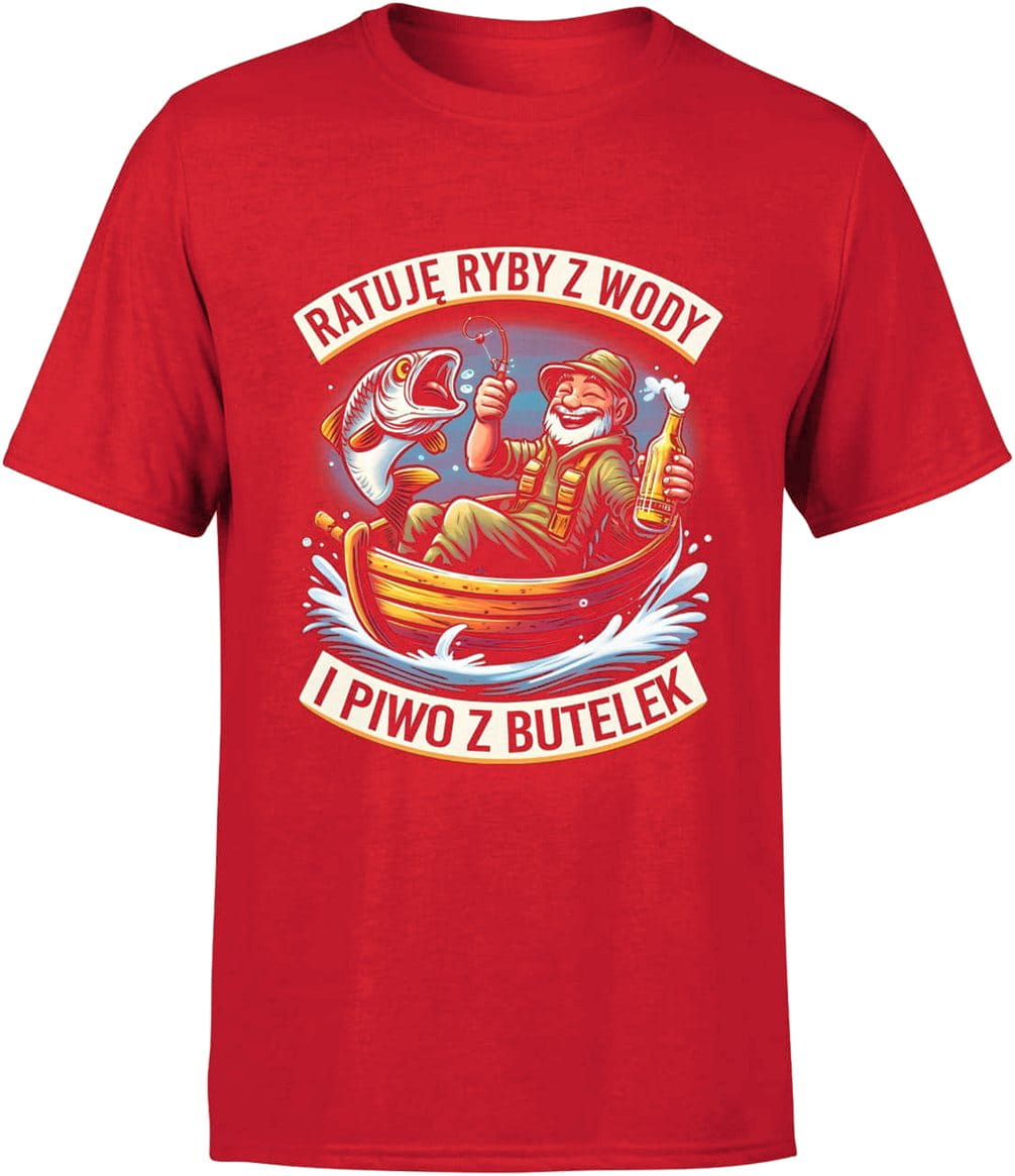 Koszulka Ratuję ryby z wody i piwo z butelek z nadrukiem męska