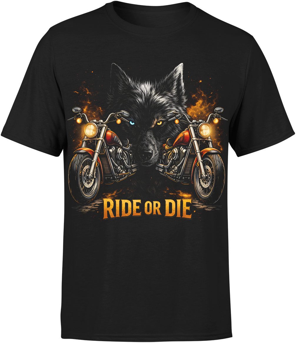 Ride or die wilk motocykle ogień biker klimat jazda wolność pasja maszyny styl Męska koszulka