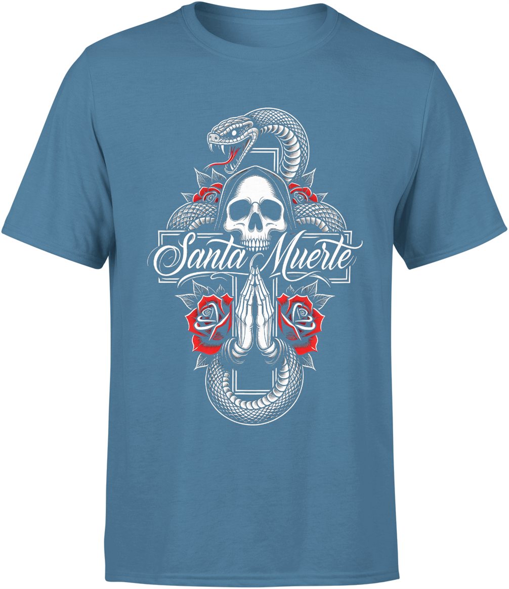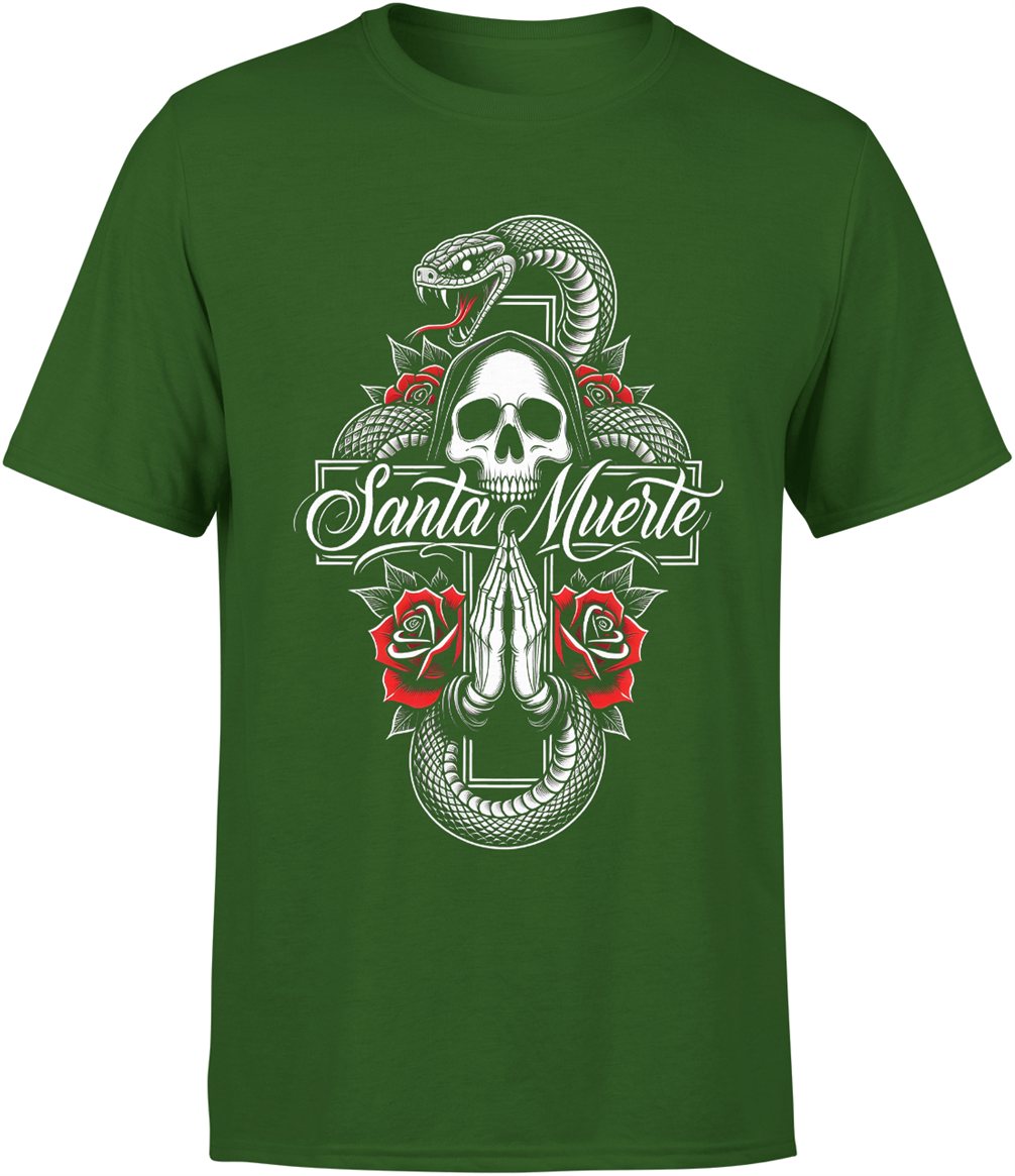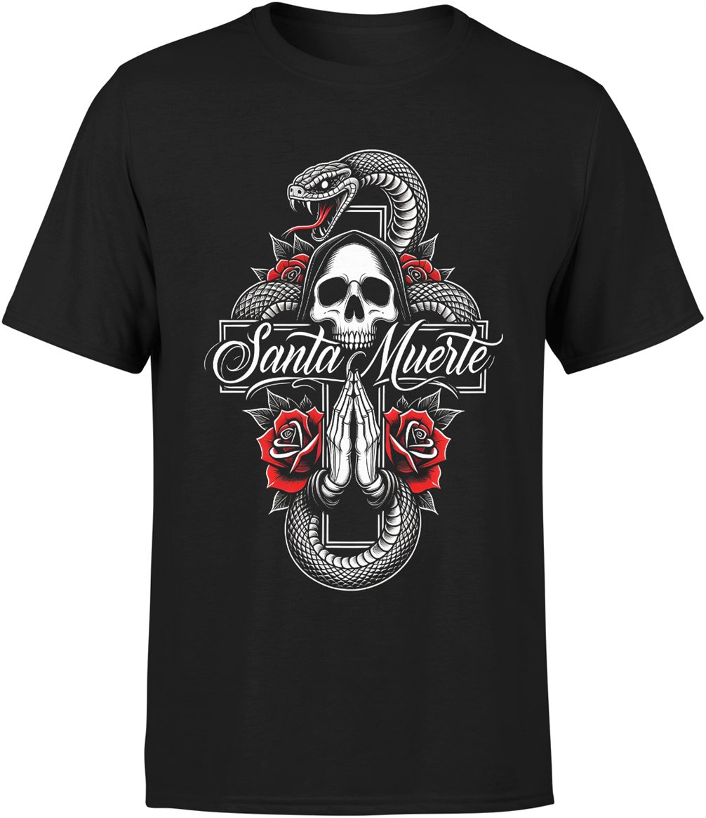 Santa Muerte czaszka róże wąż symbolika mistyczna mroczny klimat tatuaż styl Męska koszulka