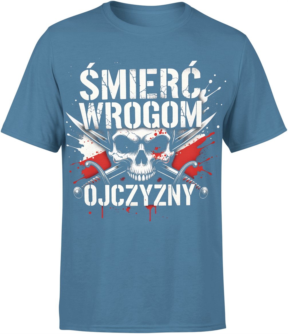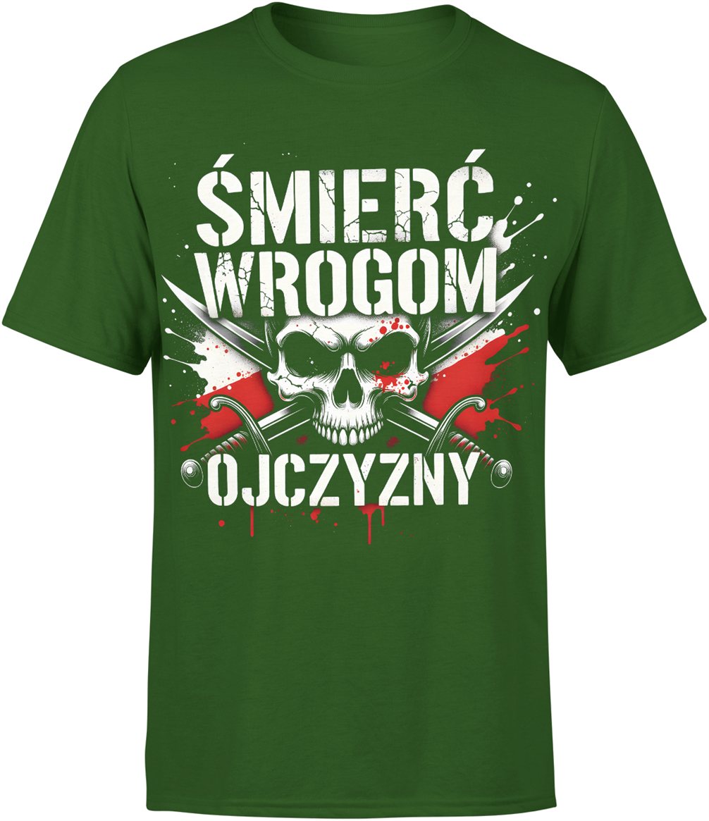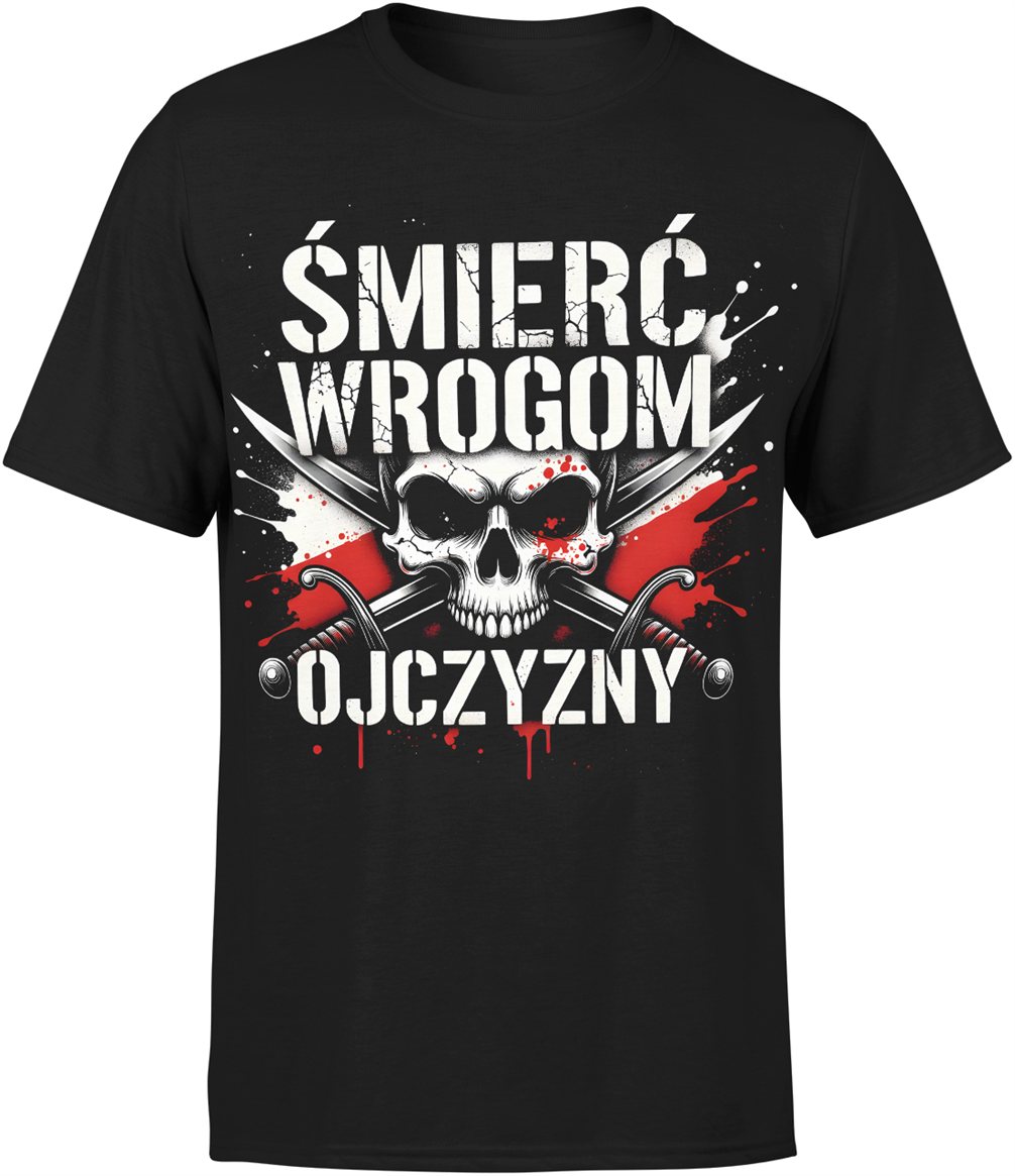 Śmierć Wrogom Ojczyzny czaszka miecze patriotyczny symbol walka honor siła czerwono biała Męska koszulka