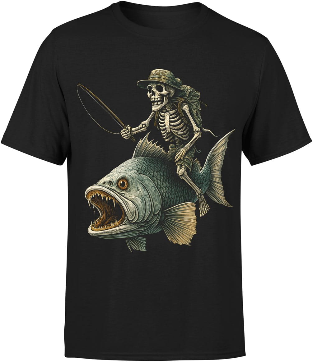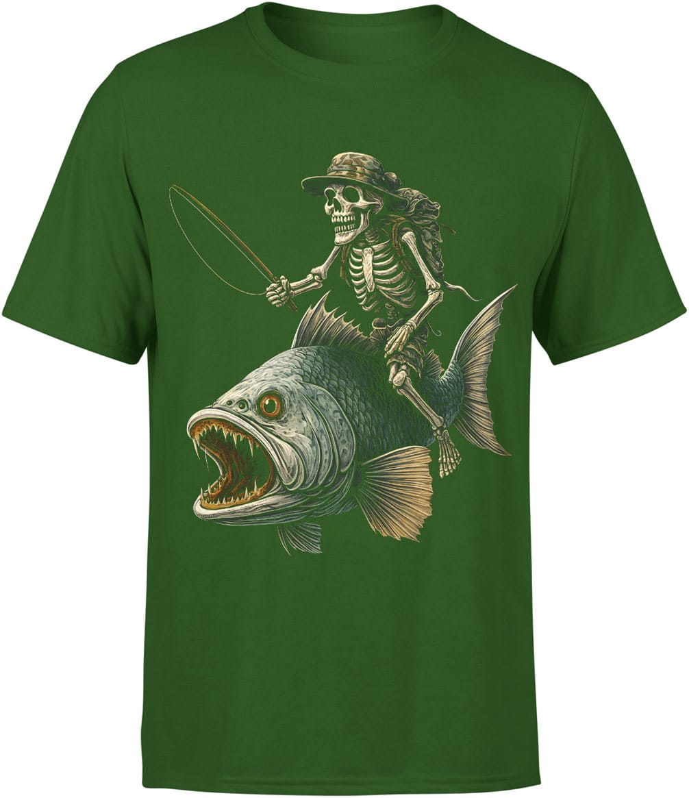 Szkielet wędkarz na rybie czarny humor pasja łowienia Męska koszulka