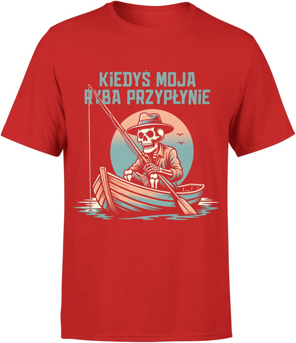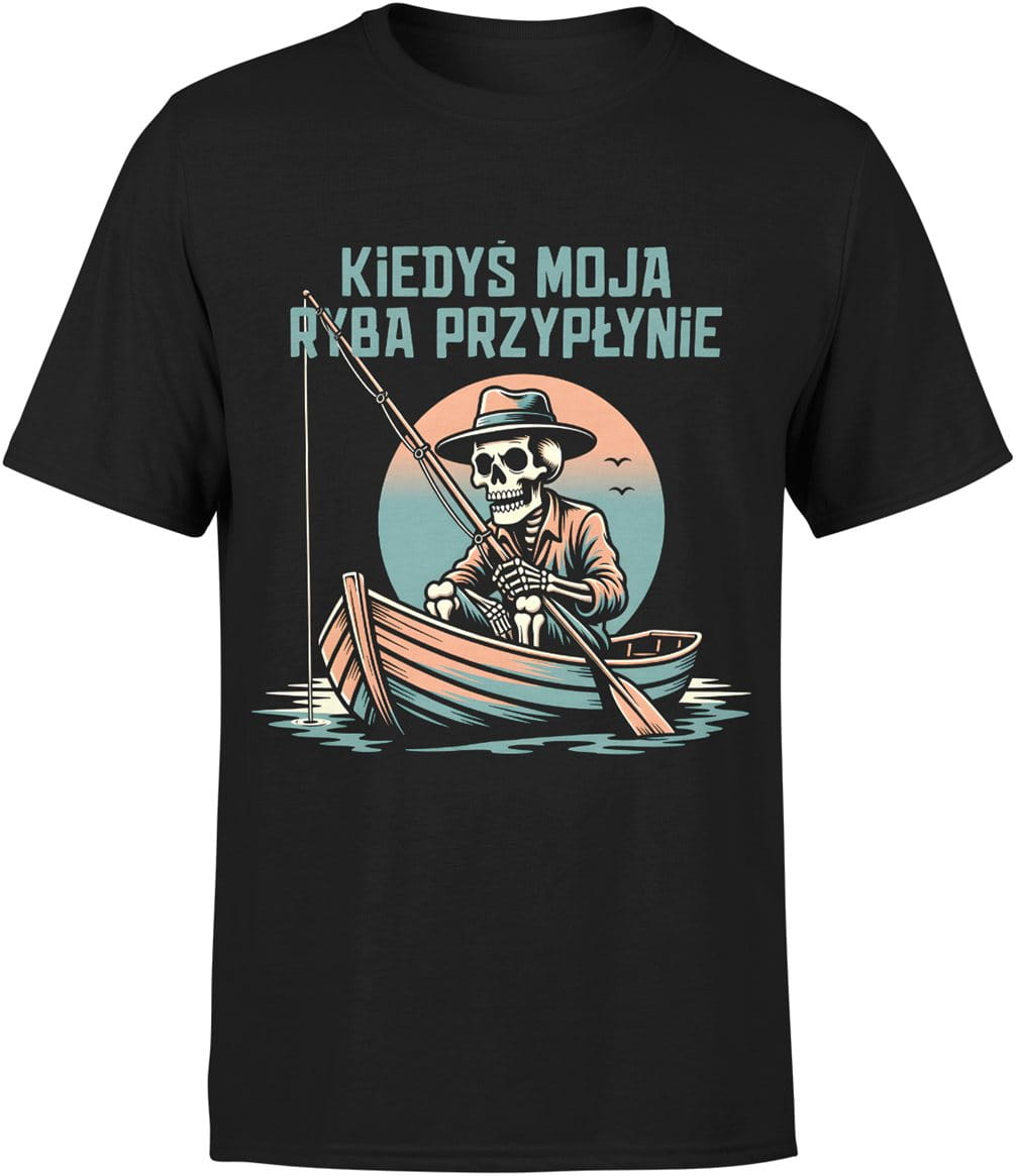 Wędkarz szkielet humor czarny dystans łowienie ryb Męska koszulka