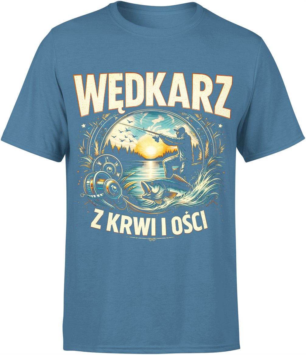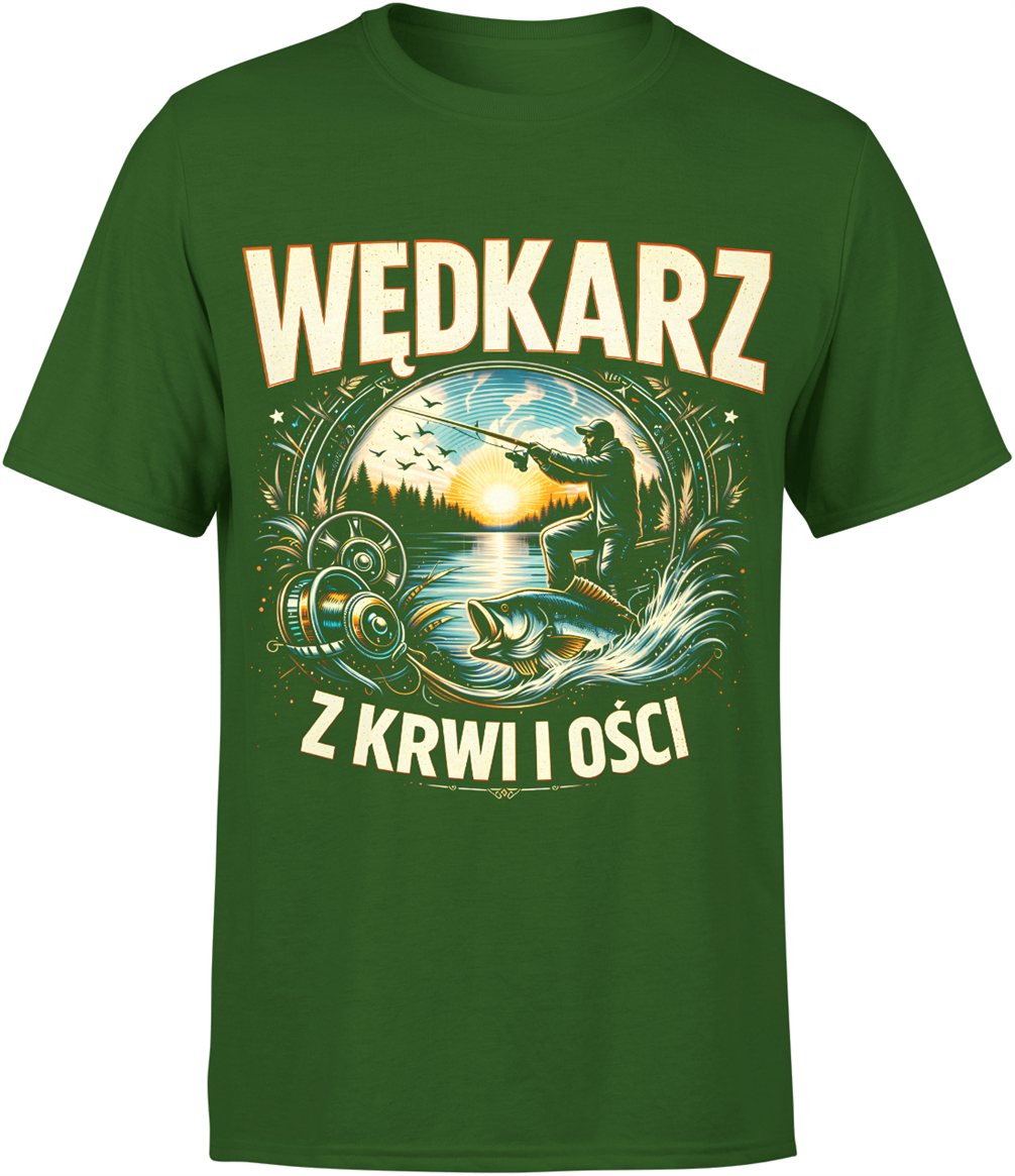 Wędkarz z krwi i kości jezioro ryba zachód słońca pasja hobby natura relaks Męska koszulka