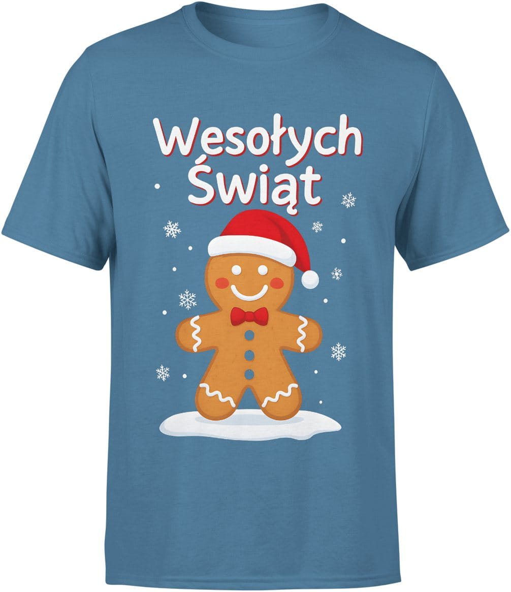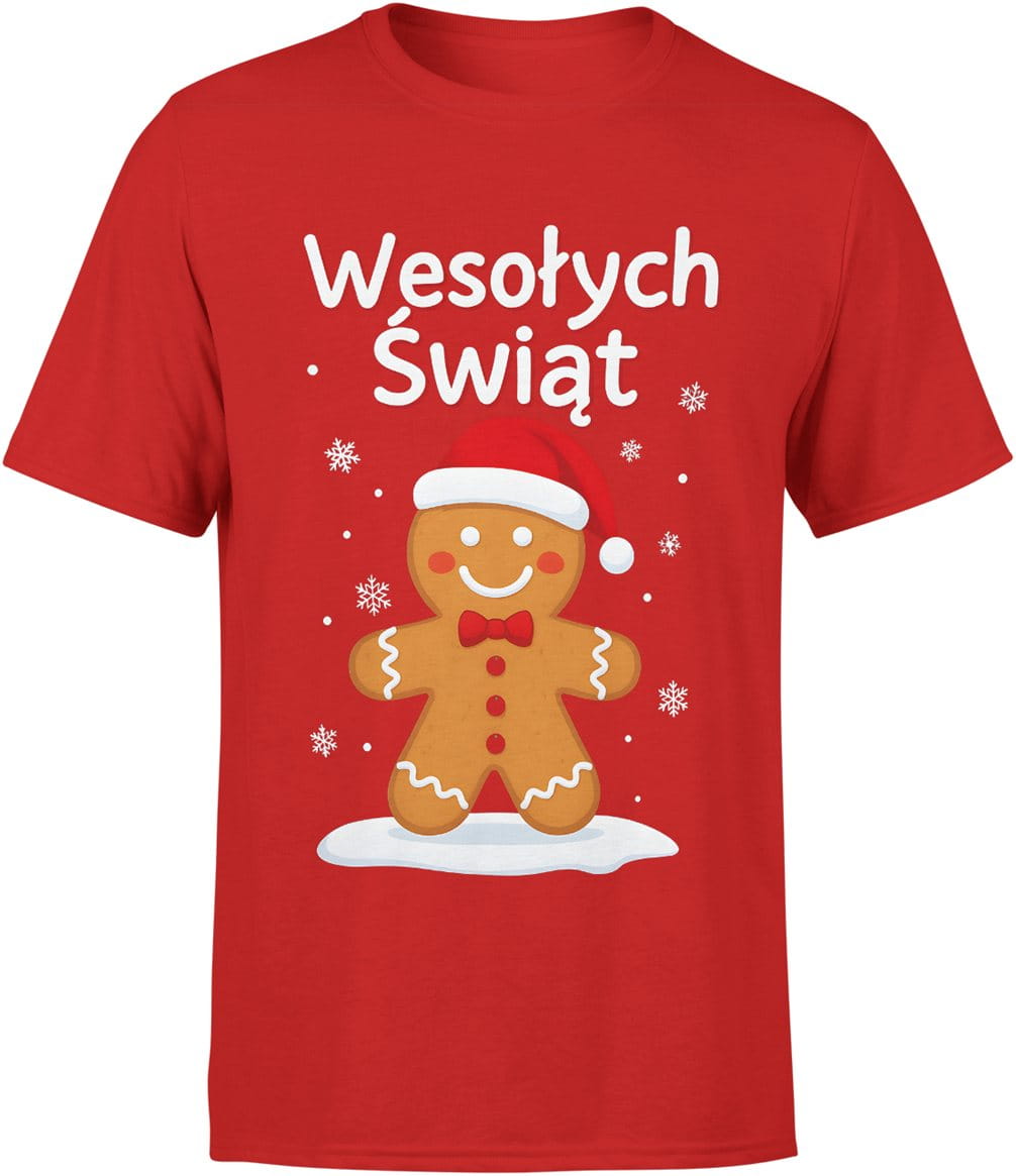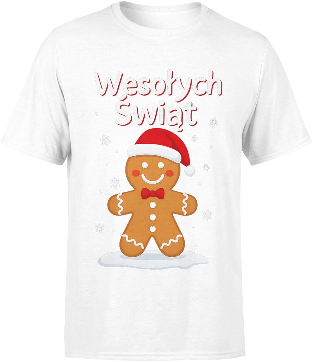 Wesołych Świąt – piernikowy ludzik w czapce Mikołaja Męska koszulka