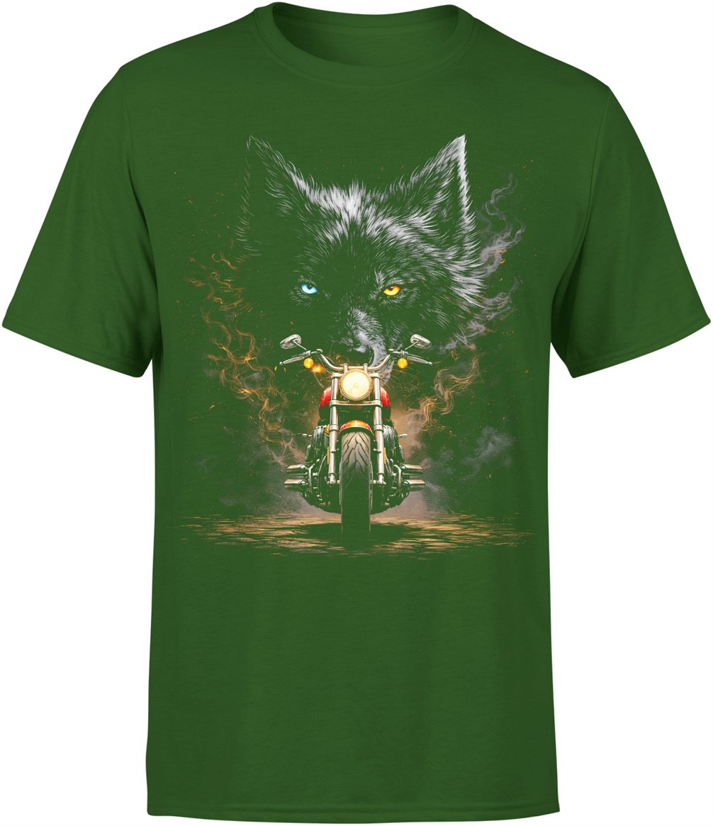 Wilk i motocykl ogień jazda wolność adrenalina biker styl droga pasja motory Męska koszulka