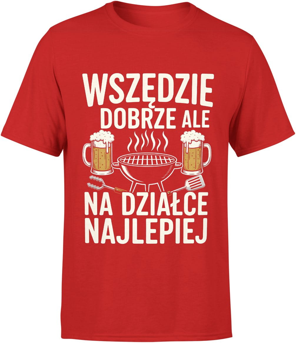 Wszędzie dobrze ale na działce najlepiej relaks grill piwo weekendowy klimat Męska koszulka