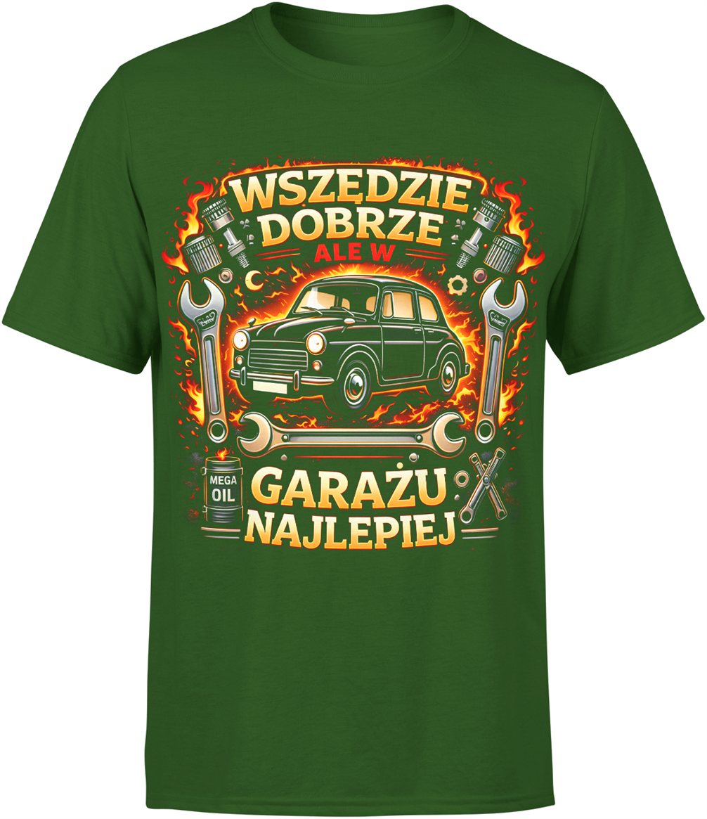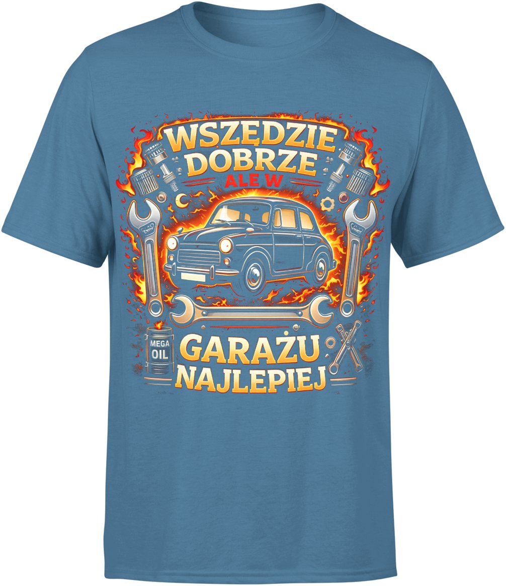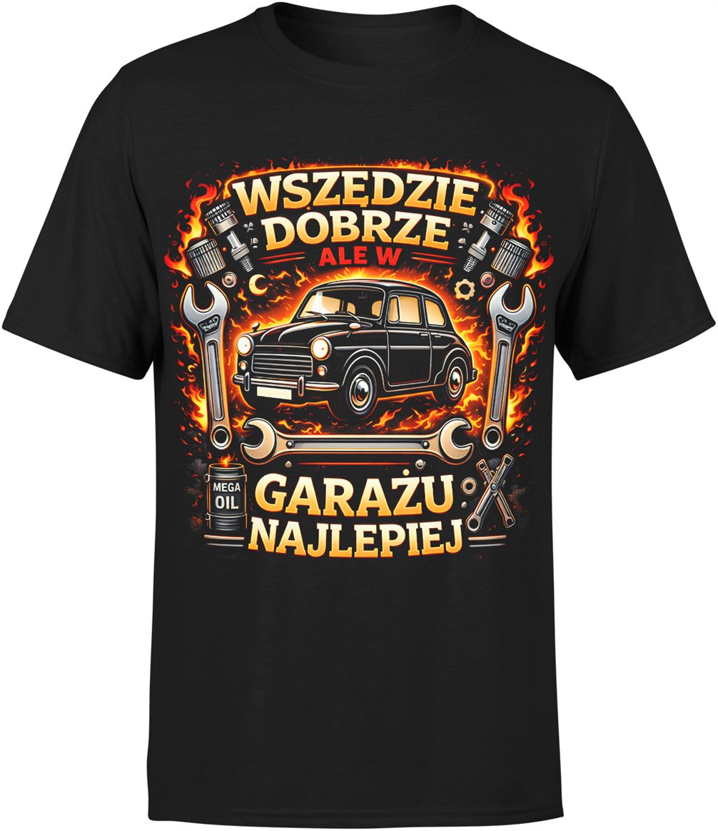 Wszędzie dobrze ale w garażu najlepiej mechanika samochód klucze pasja auto styl retro Męska koszulka