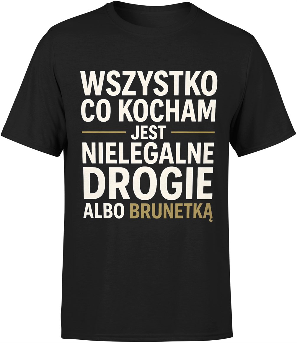 Wszystko co kocham jest nielegalne drogie albo brunetka relacje miłość zabawny tekst Męska koszulka