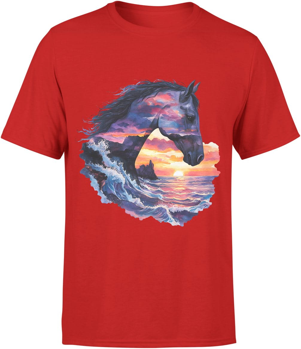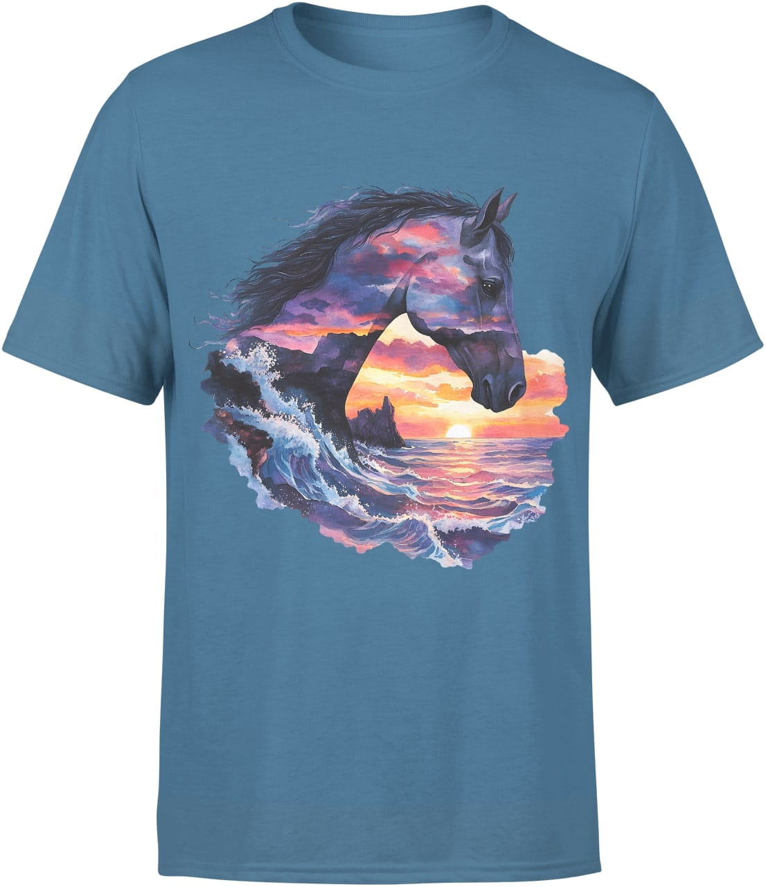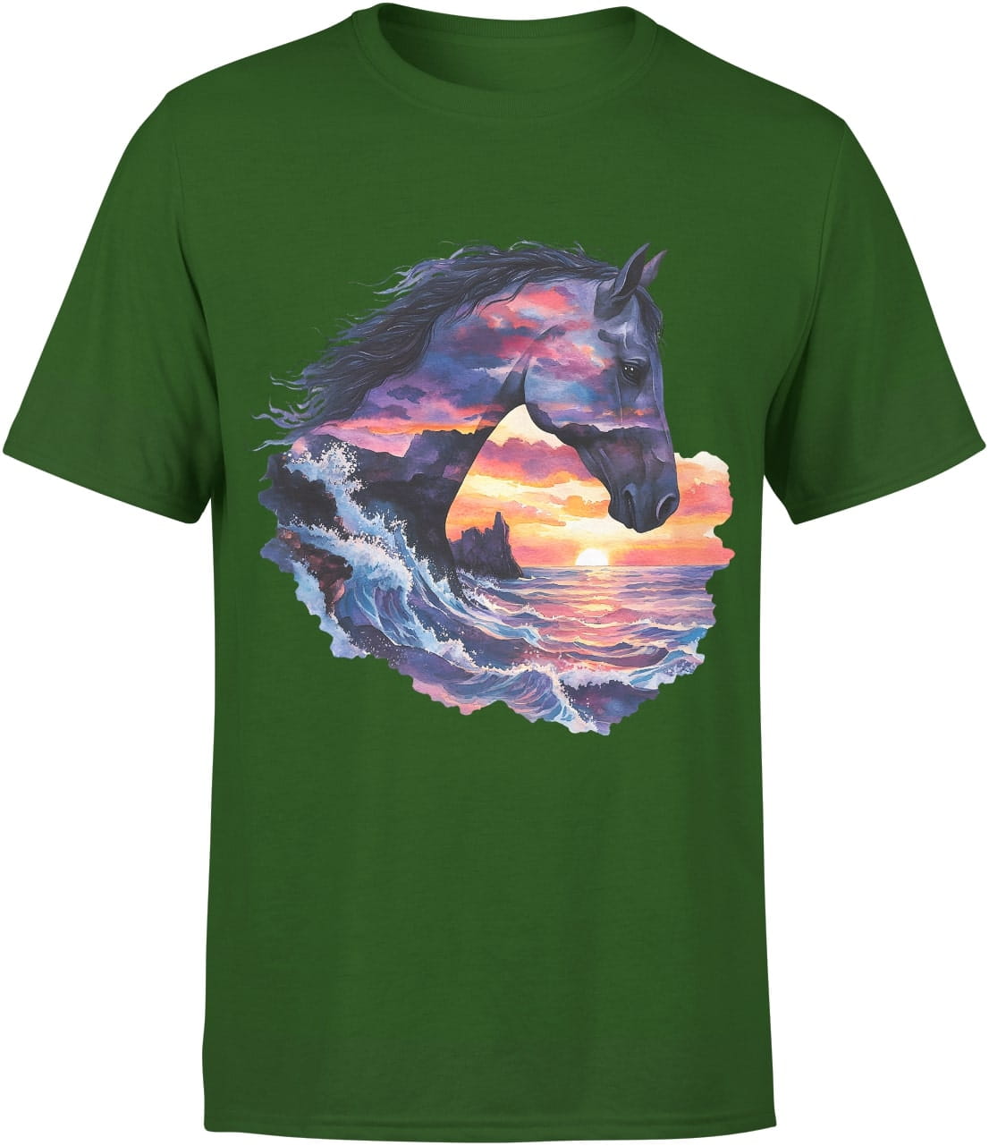 Z koniem zachodem słońca brzegiem morza Męska koszulka