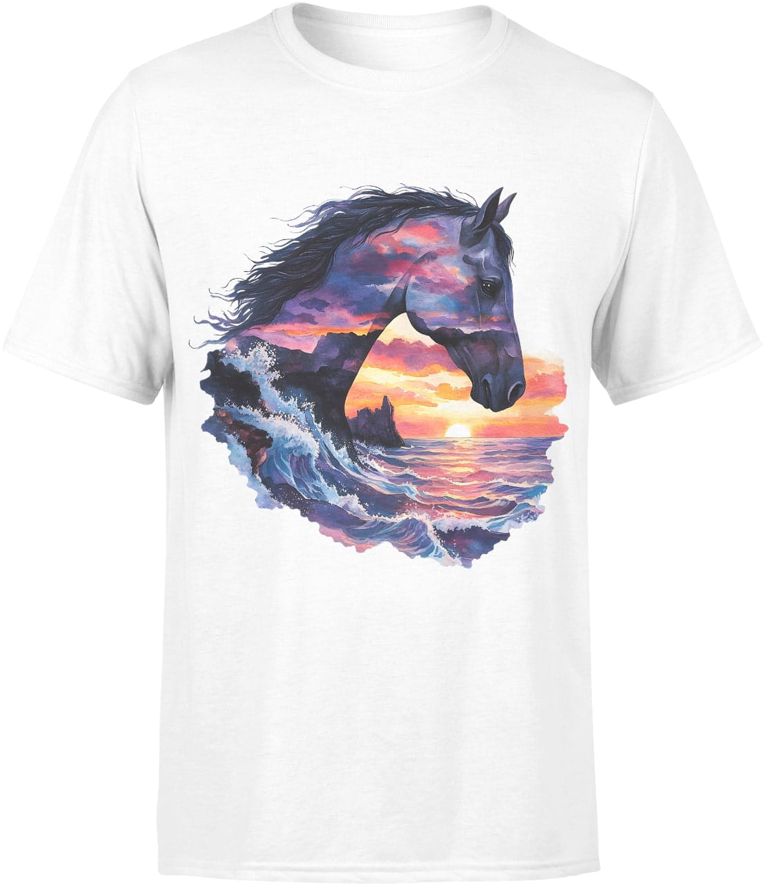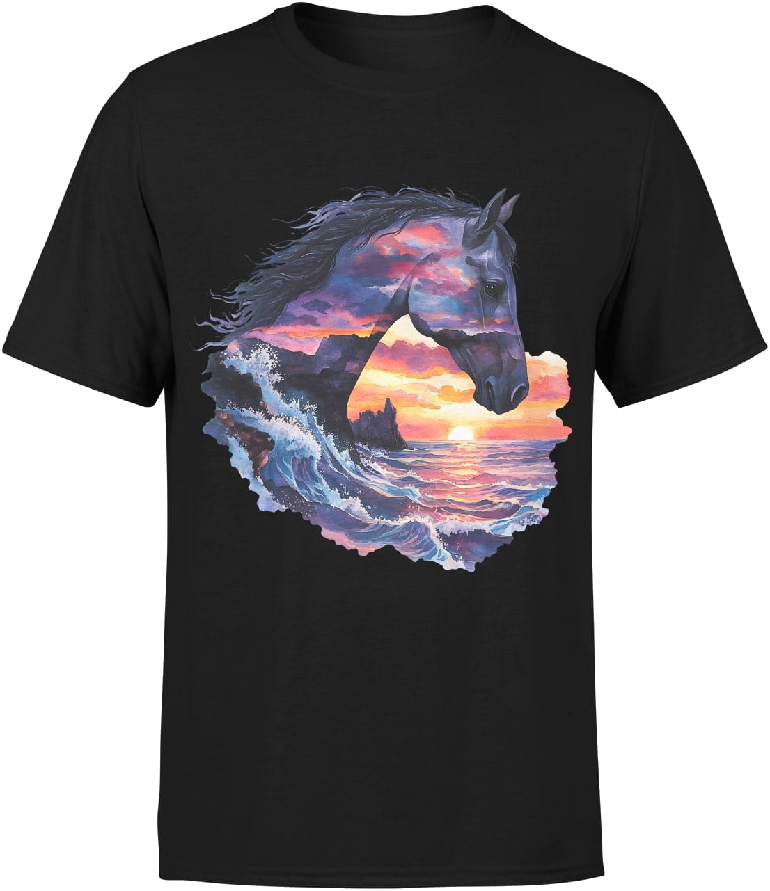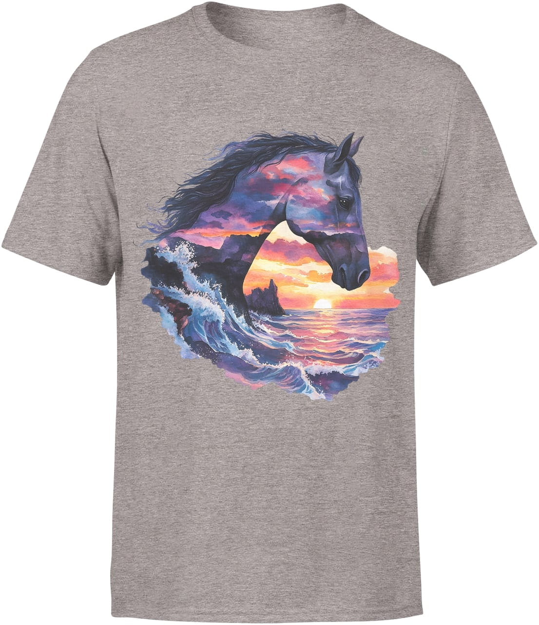 Z koniem zachodem słońca brzegiem morza Męska koszulka