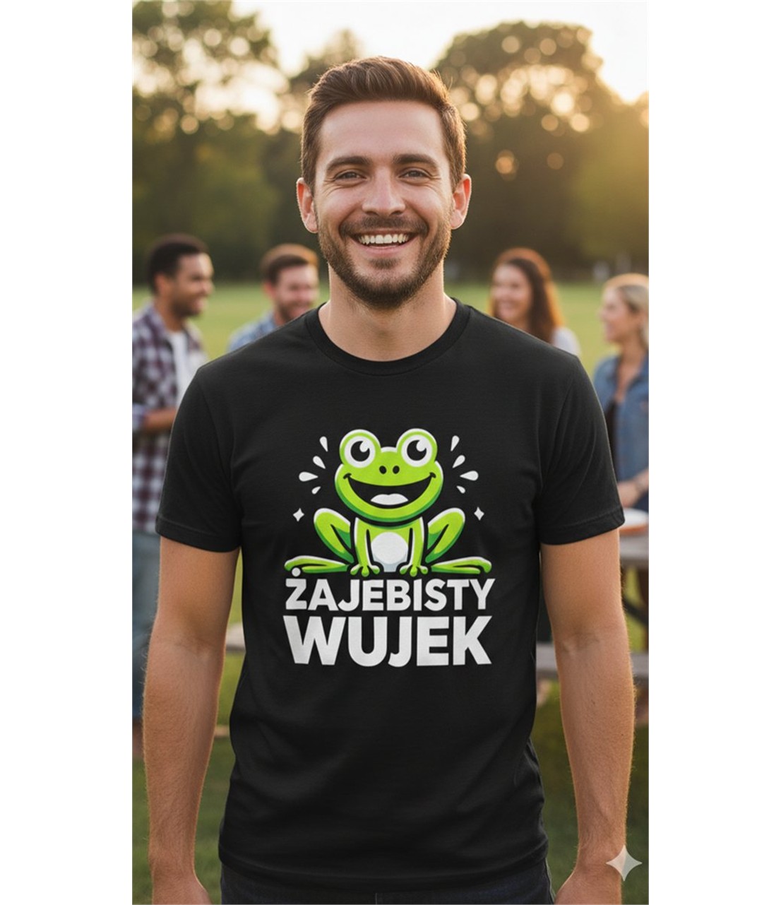 Ta koszulka od razu wyróżnia się dzięki motywowi uroczej żaby i zabawnemu napisowi. Zajebisty wujek koszulka męska z nadrukiem bazuje na grze słów, która jest prosta i trafia w punkt. Humorystyczny styl sprawia, że trudno przejść obok niej obojętnie. To propozycja dla osób, które lubią wyrażać siebie bez zbędnej powagi. Męska koszulka Żajebisty wujek z nadrukiem daje efekt lekkiego zaskoczenia i wywołuje uśmiech. Motyw żaby dodaje całości charakteru i sprawia, że całość jest jeszcze bardziej zapamiętywalna. Żajebisty wujek koszulka z nadrukiem męska pokazuje dystans do siebie i poczucie humoru. Dzięki temu dobrze sprawdza się w codziennych sytuacjach, gdzie liczy się luz.