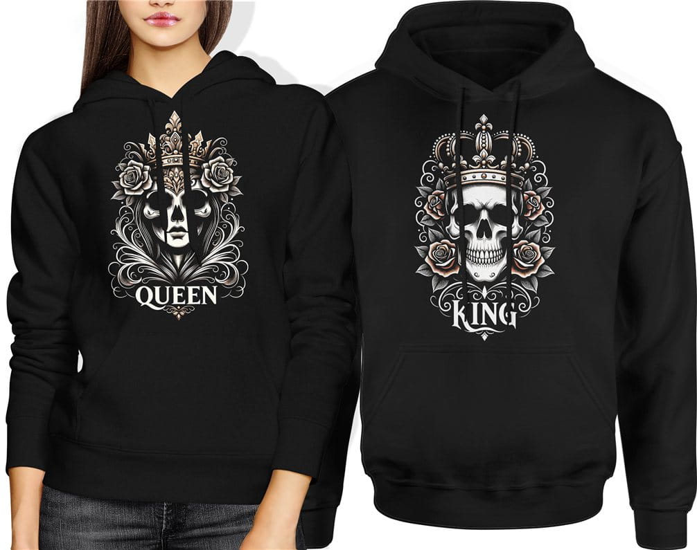 Zestaw bluz Queen King duet dla par czaszka korona mroczny styl gotycki