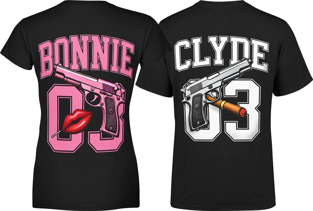 Zestaw koszulek Bonnie Clyde dla par gangsterska broń streetwear z pistoletem nadruk na plecach z tyłu